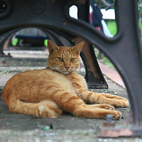 벤치 하나에 한마리(?) 씩 공원의 아져씨들과 같이 큼지막한 갈색고양이가 벤치에서 여유를 즐기고 있습니다.