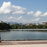캐널시티 입구에서 세트레봉의 빵을 먹고 있는 모녀의 모습