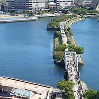 멀리보이는 오삼바시 국제 여객터미널, 마치 큰 배와 같은 모습으로 바다위에 두둥실 떠 있습니다.