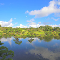 구마모토의 맑은 물위에 비쳐 더욱 밝게 빛나는 등불