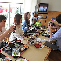 시작점을 떠나 몇 걸음 옮기다 보면 우케노구치 온천(筌の口温泉)마을로 접어들며 이 곳은 노벨문학상을 수상한 가와바타 야스나리(川端康成)가 머물며 집필활동을 펼친 곳으로 알려져 있습니다. 조용한 물소리가 흐르는 계곡을 따라 소박하게 펼쳐진 숲길을 걸어 숲길을 빠져나오면 장대한 한다고원(飯田高原)이 펼쳐지며 규슈에서 가장 인기있는 드라이브 코스인 야마나미 하이웨이를 따라 걷게 됩니다.
