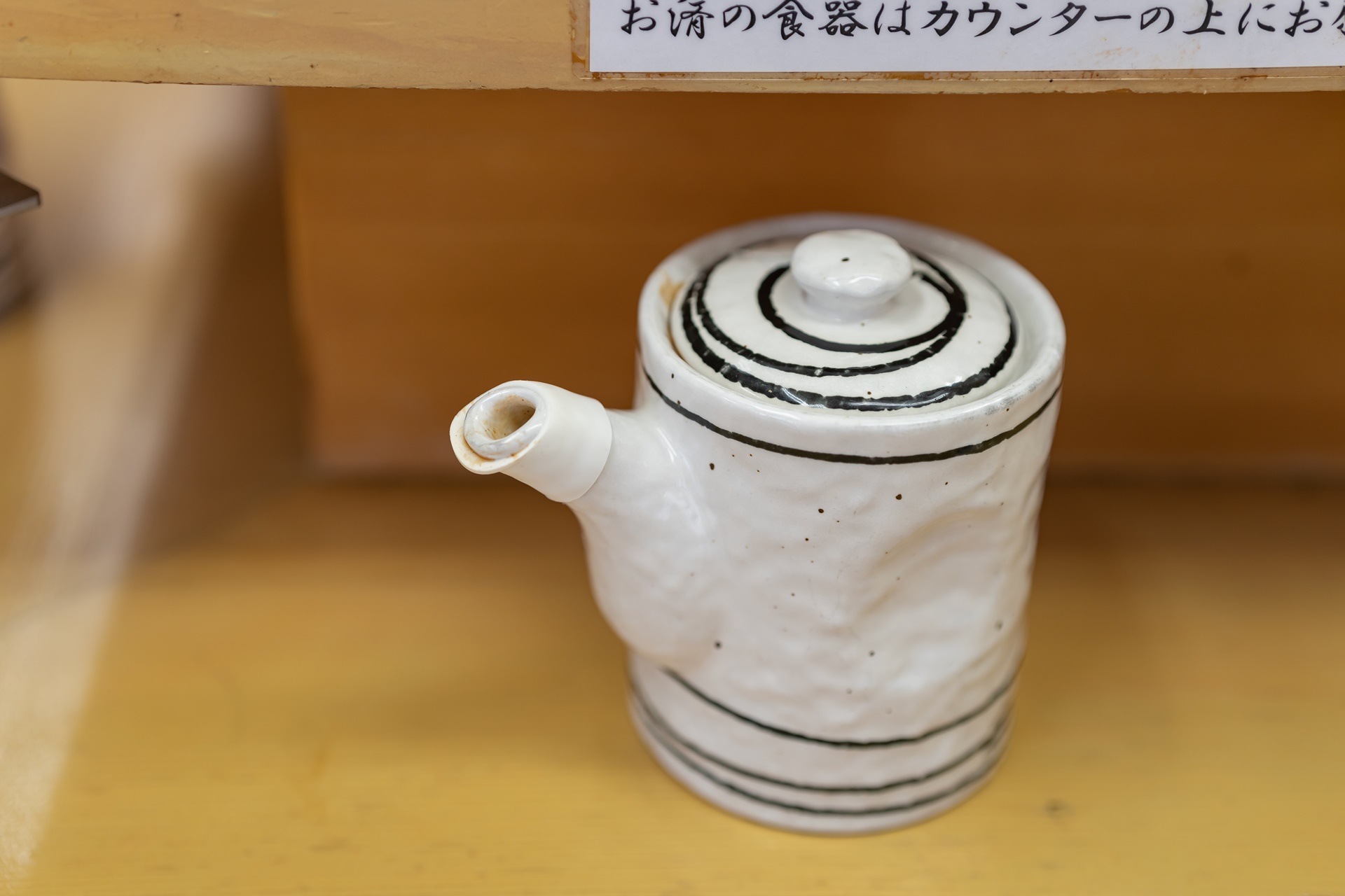 카운터 자리에는 돈까스 소스, 간장 등이 놓여 있습니다.