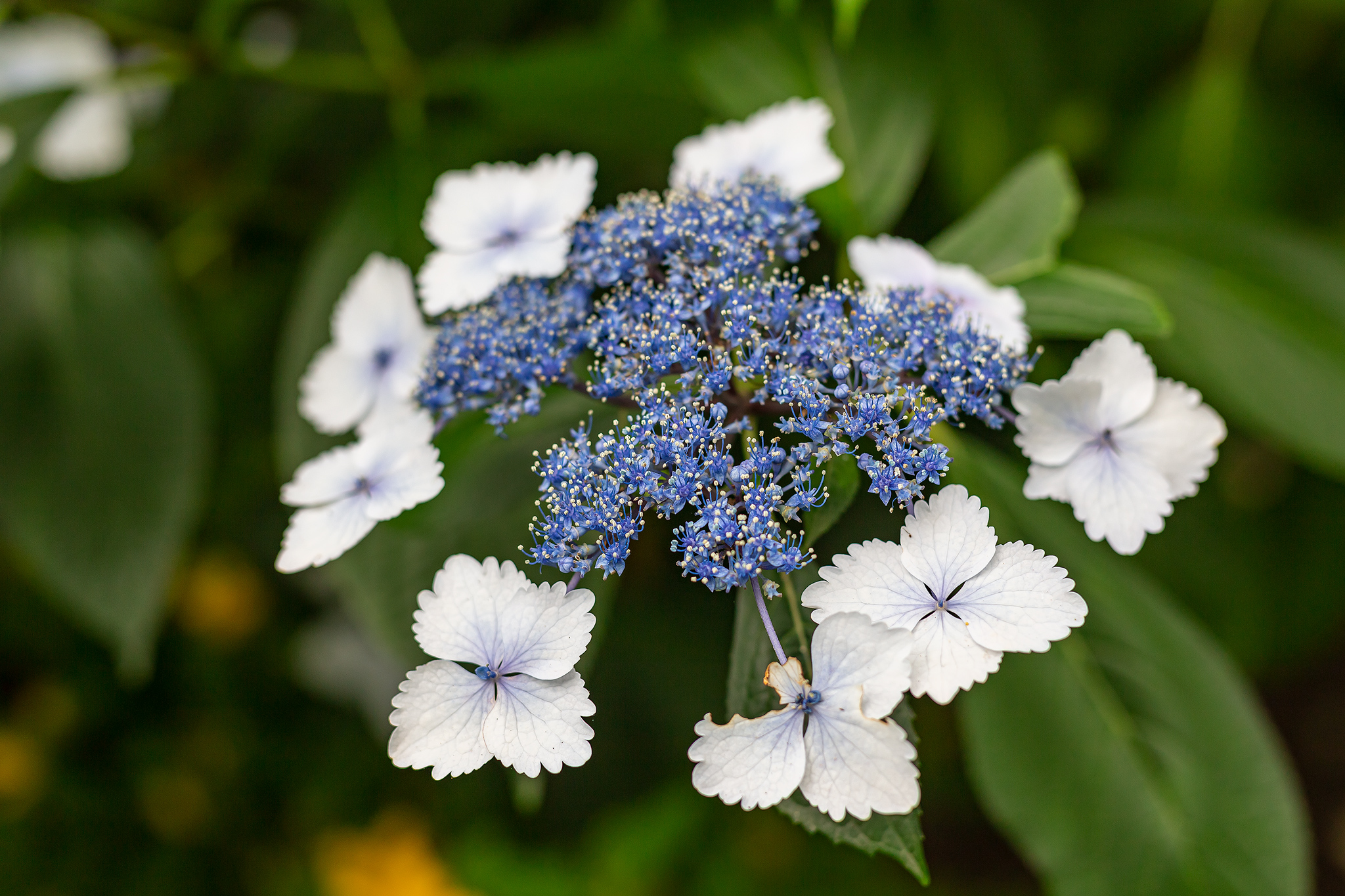 수국의 꽃모양은 꽃받침이 모여있는 형태로 분홍색, 청색, 백색의 다양한 색상을 띱니다. 꽃받침은 수술의 꽃가루가 암술 머리로 옮겨 지도록 유도하는 역할을 하며, 실제 수정은 안쪽의 작은 꽃에서 일어납니다. 수국의 꽃받침 색은 토양의 산도(ph)에 따라 변화하며 낮은 산성(ph 5.5 이하) 에서는 푸른색, 높은 염기성(ph 5.5 이상)에서는 붉은 색으로 발현되고 품종에 따라 색이 나타나는 정도가 달라집니다. 흰색 품종의 경우 산도에 관계없이 흰색으로 피어납니다.