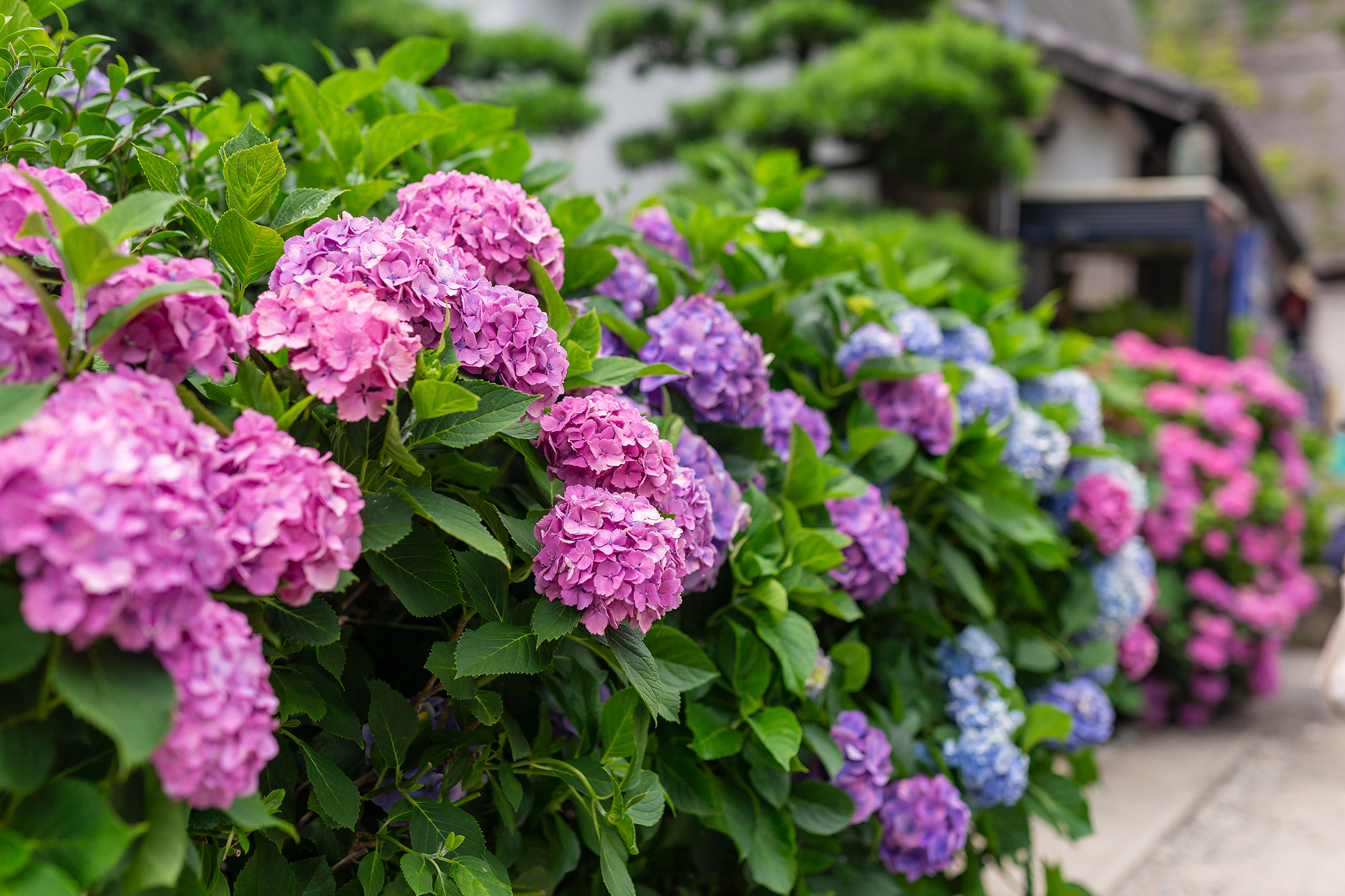영화의 한 장면 처럼 수국으로 가득한 고쿠라쿠지 인근의 거리
