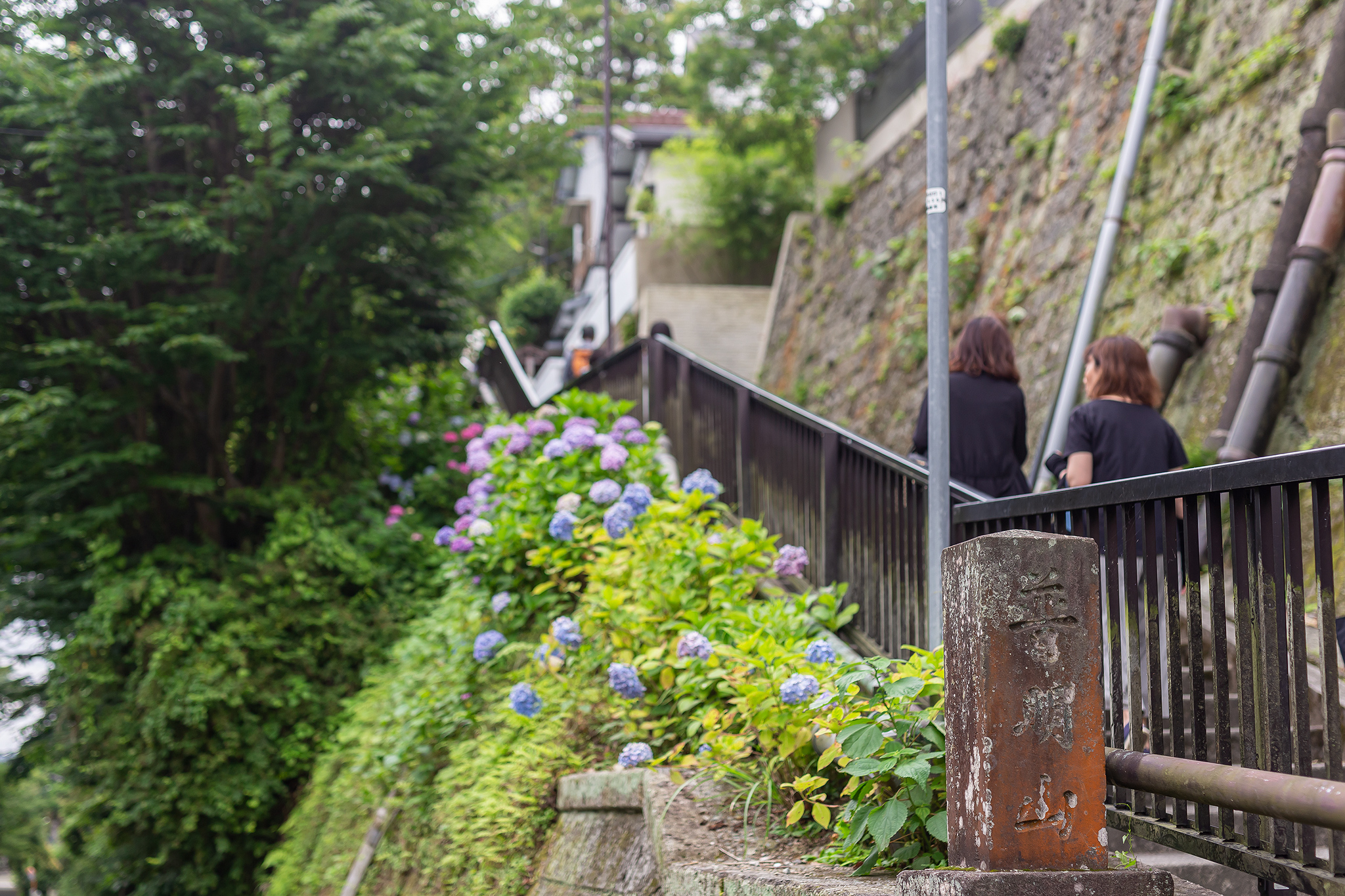 이곳도 절 계단 길을 따라 수국이 가득 핀 곳으로 에노덴 고쿠라쿠지 역과 가깝습니다.