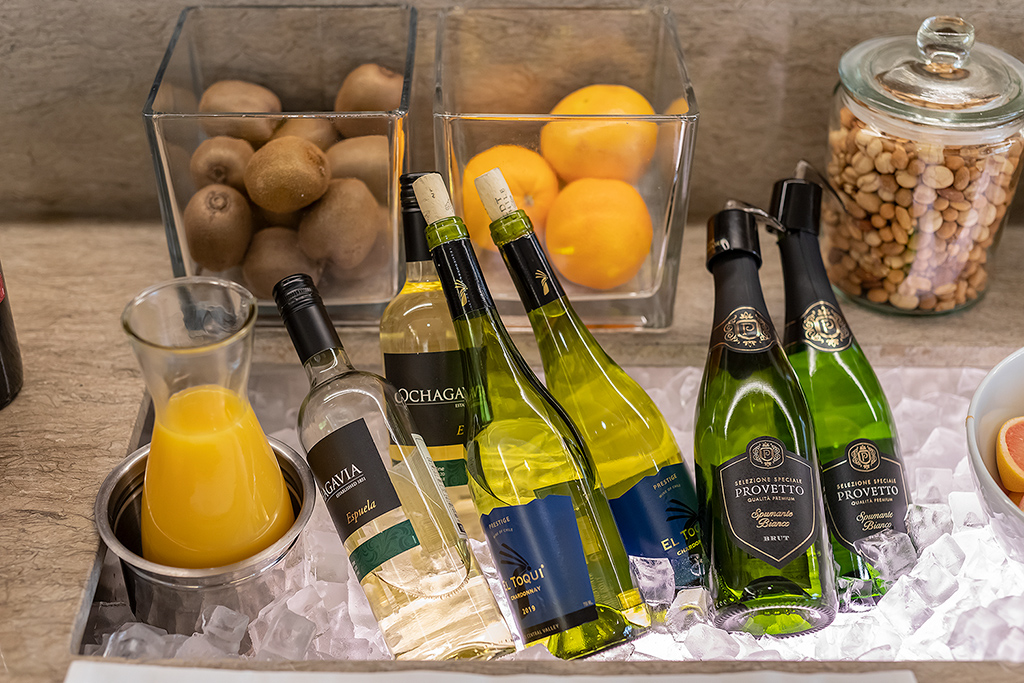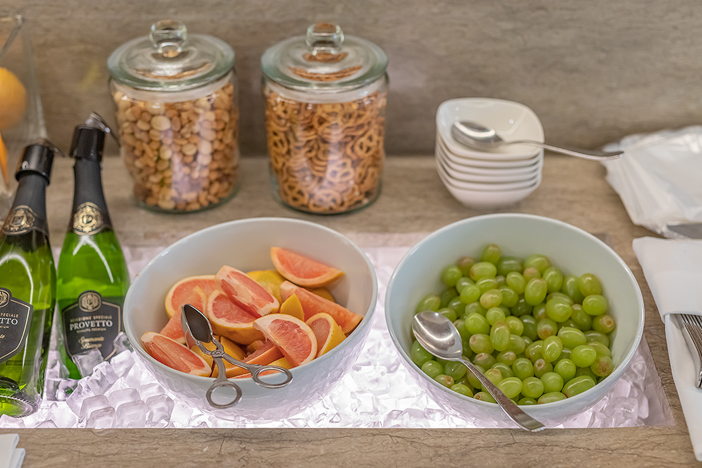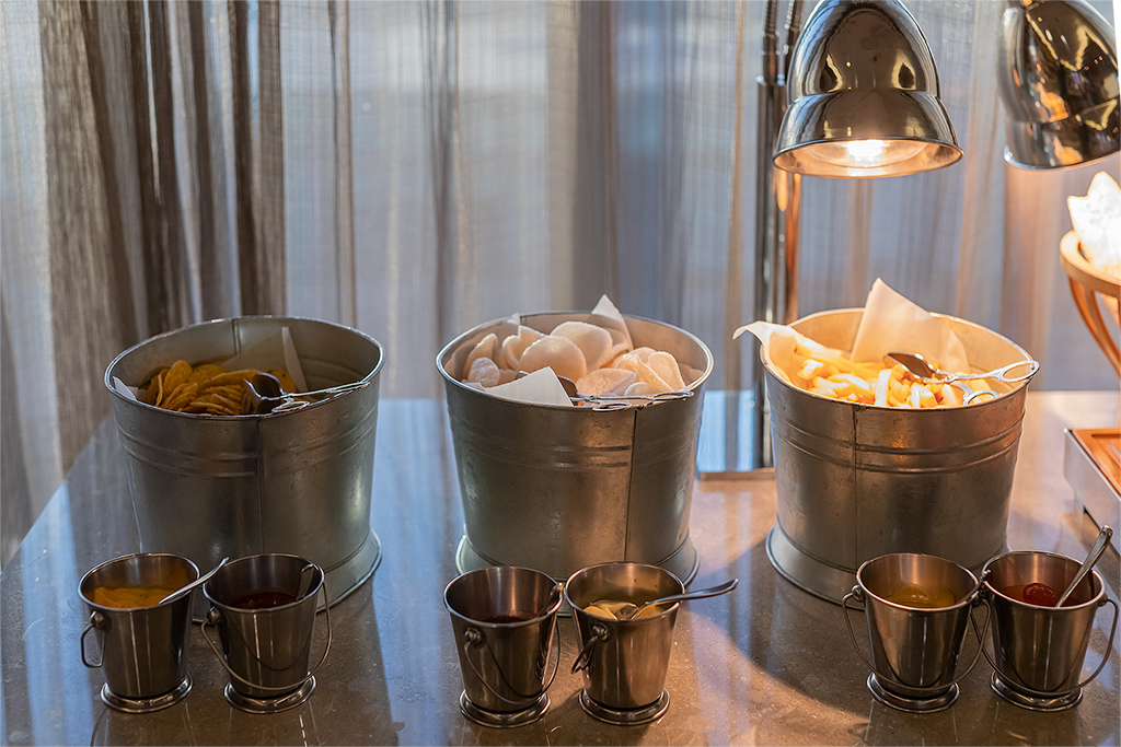 해피아워 시간에 라운지에 다시 들려서 저녁을 먹습니다.