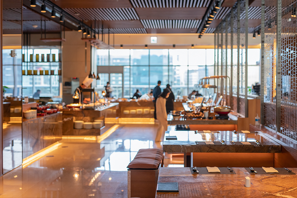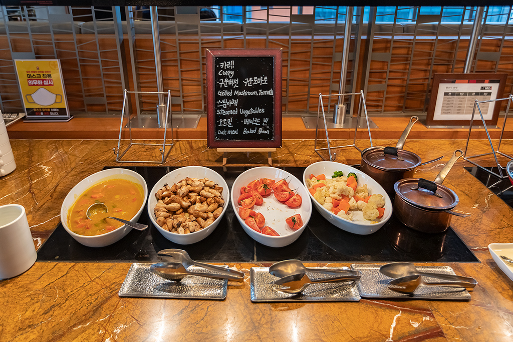 코트야드 판교 조식당인 모모카페는 제법 넓고 음식 종류도 많은 편 이었습니다.
