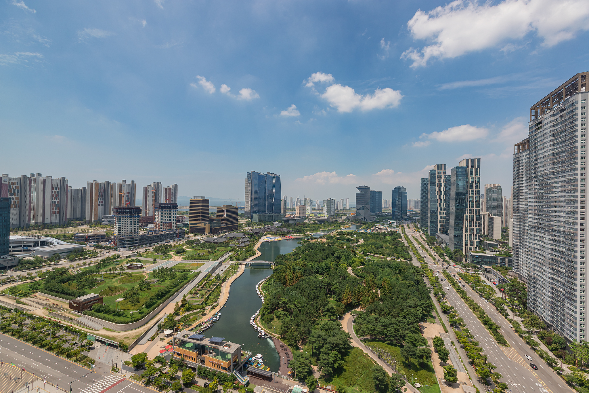 창을 열면 송도 센트럴파크가 보이는 탁 트인 뷰가 좋습니다.
