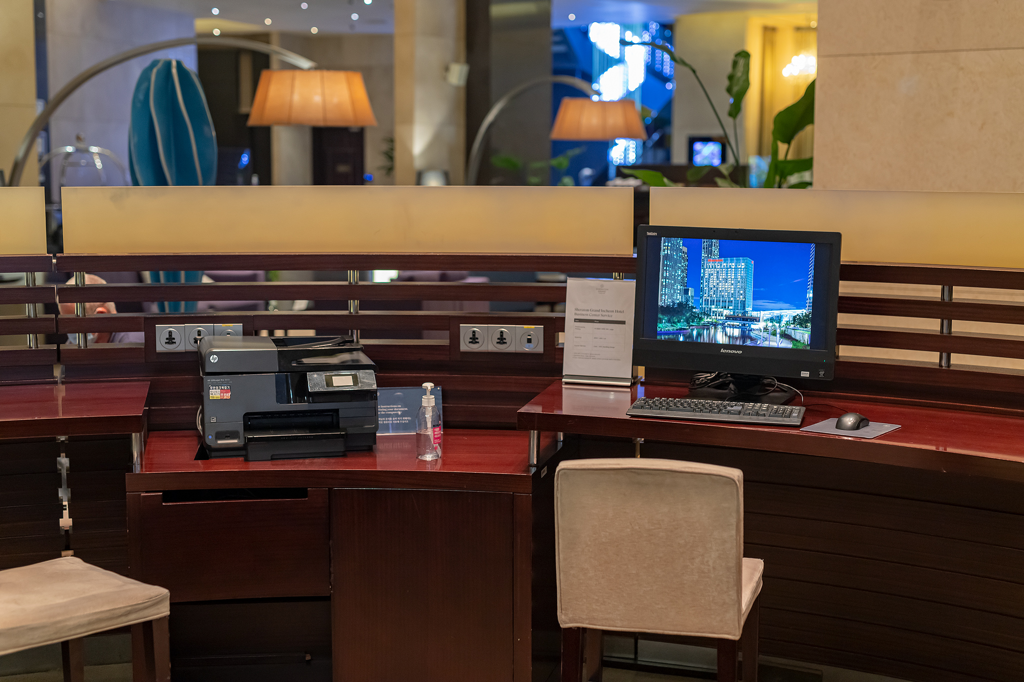 인천대교만 건너면 인천공항이라 항공사 관련 직원들이 이곳을 많이 찾으며 이들을 위한 서비스가 잘 갖추어져 있었습니다. 로비에는 비지니스 공간도 넓게 자리하고 있었습니다.