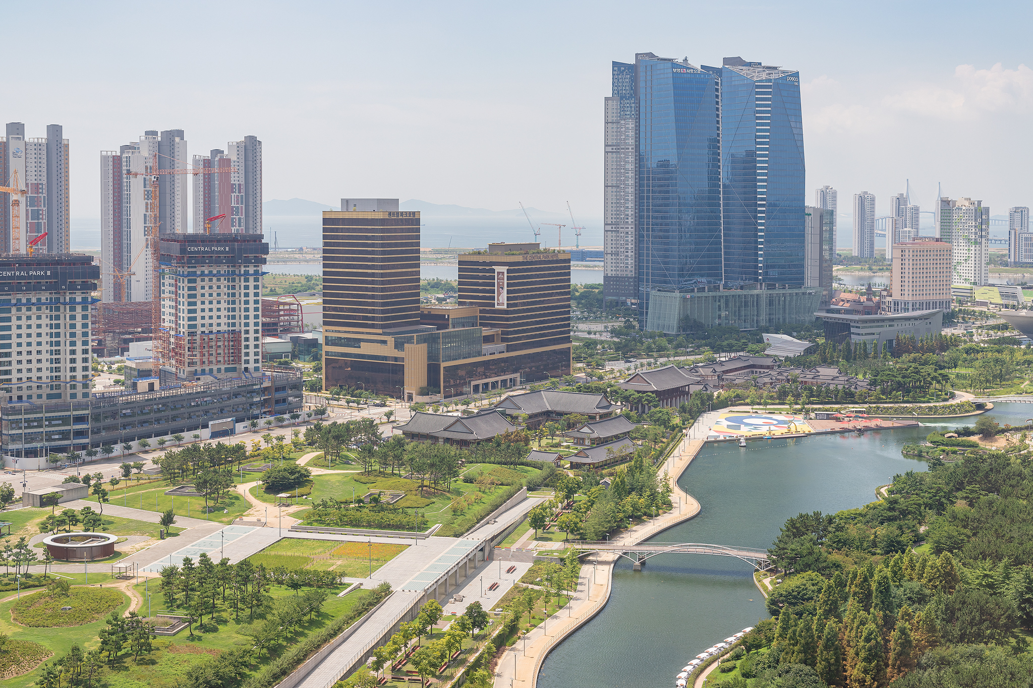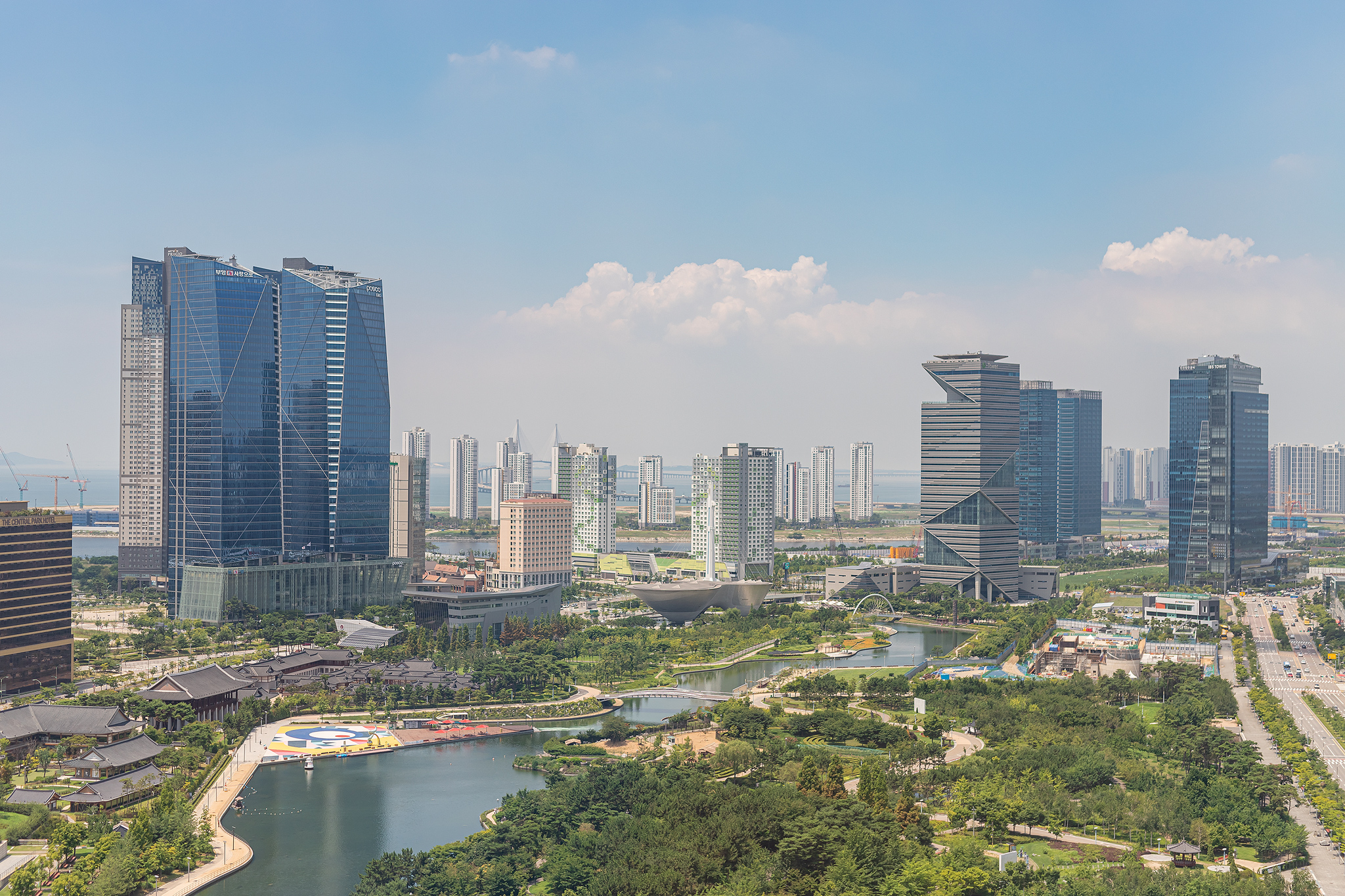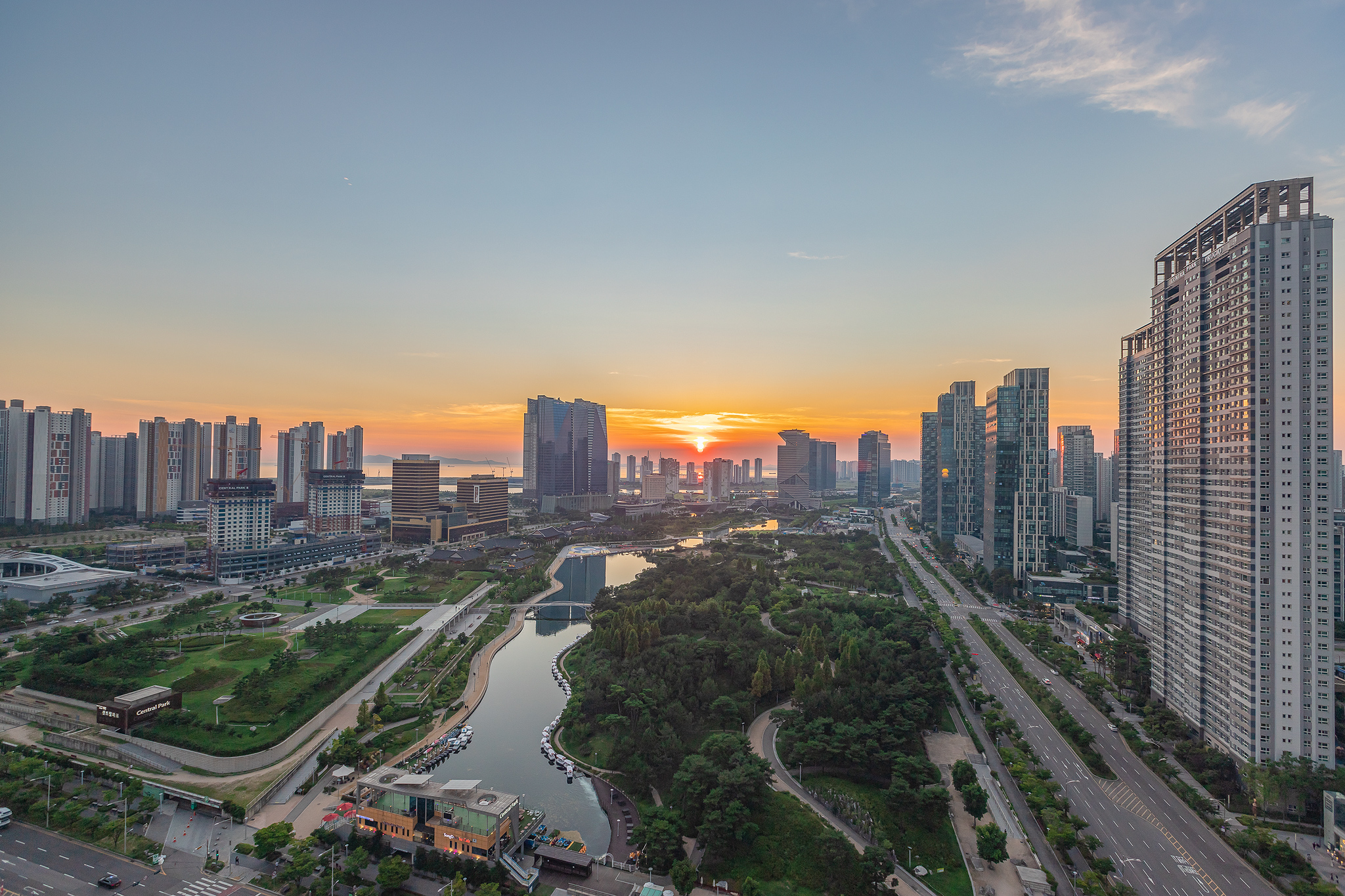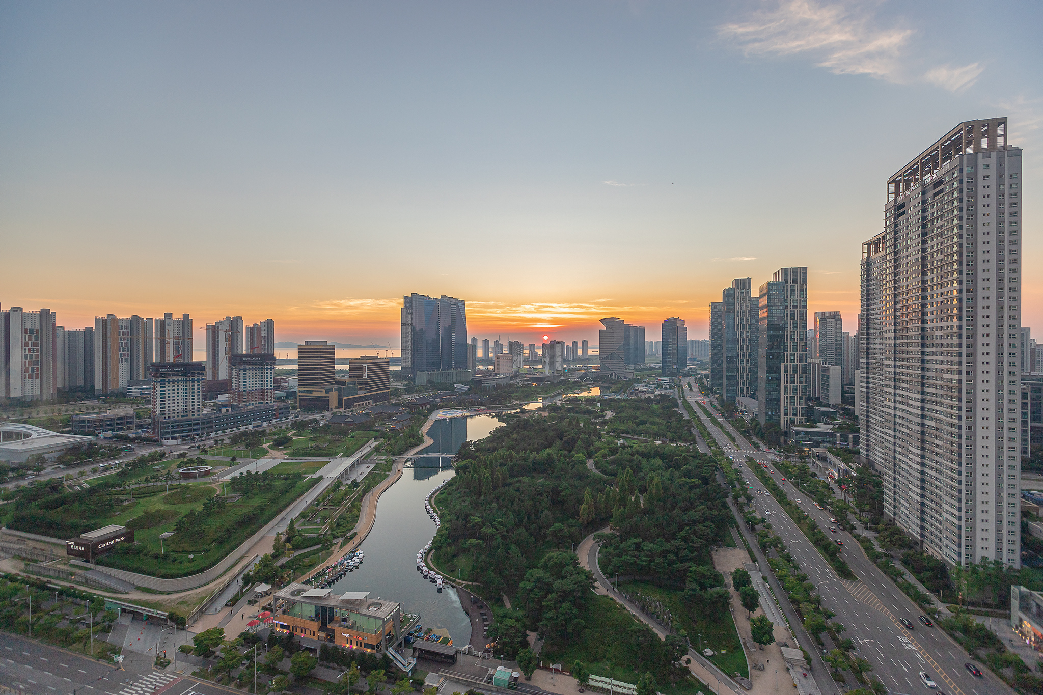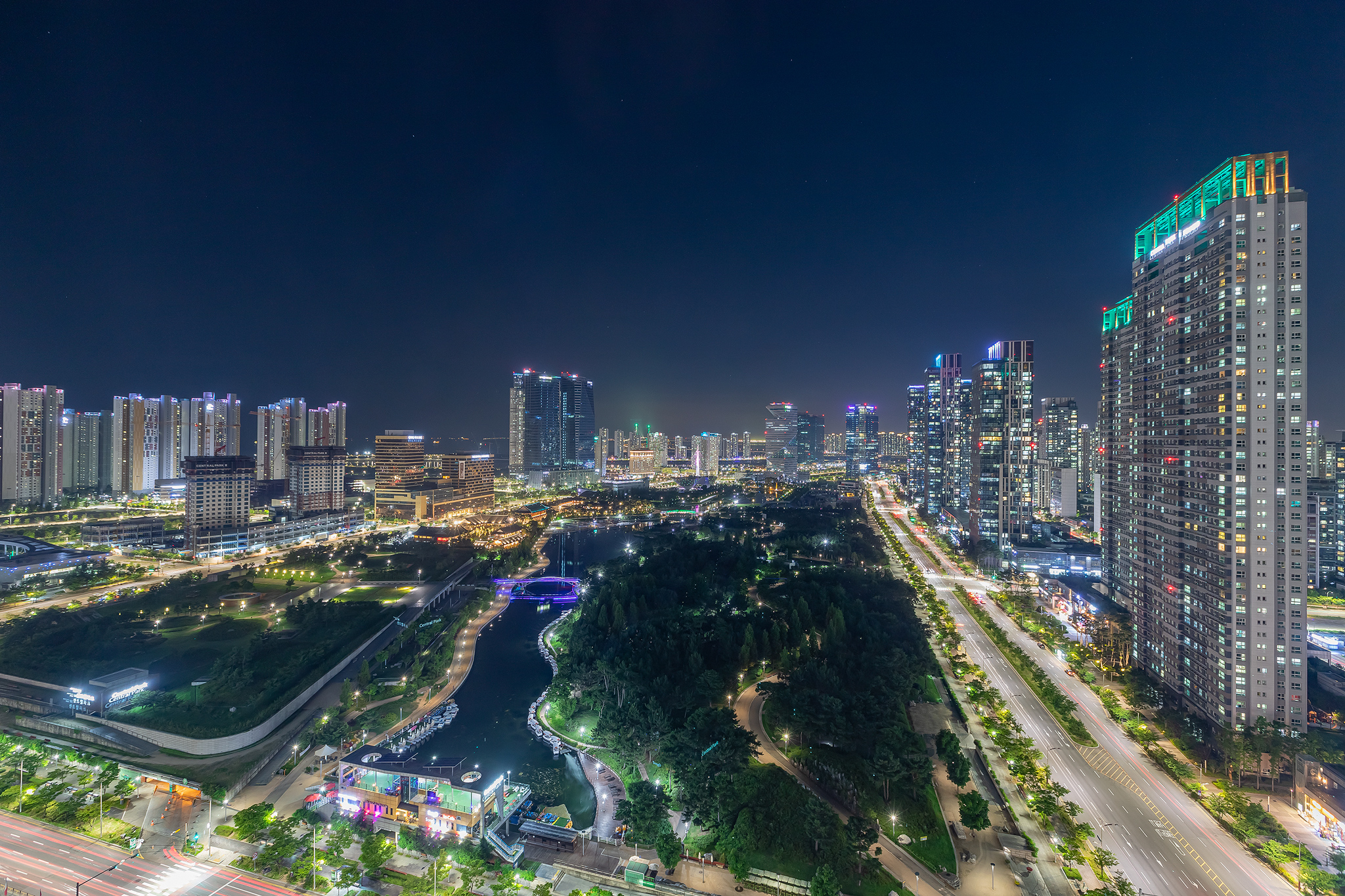공원과 바다가 함께하는 송도의 저녁 풍경