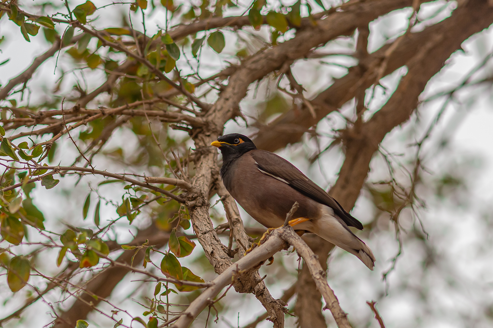 두 발을 가지런히 모으고 나뭇가지 위의 새를 계속 바라봅니다.