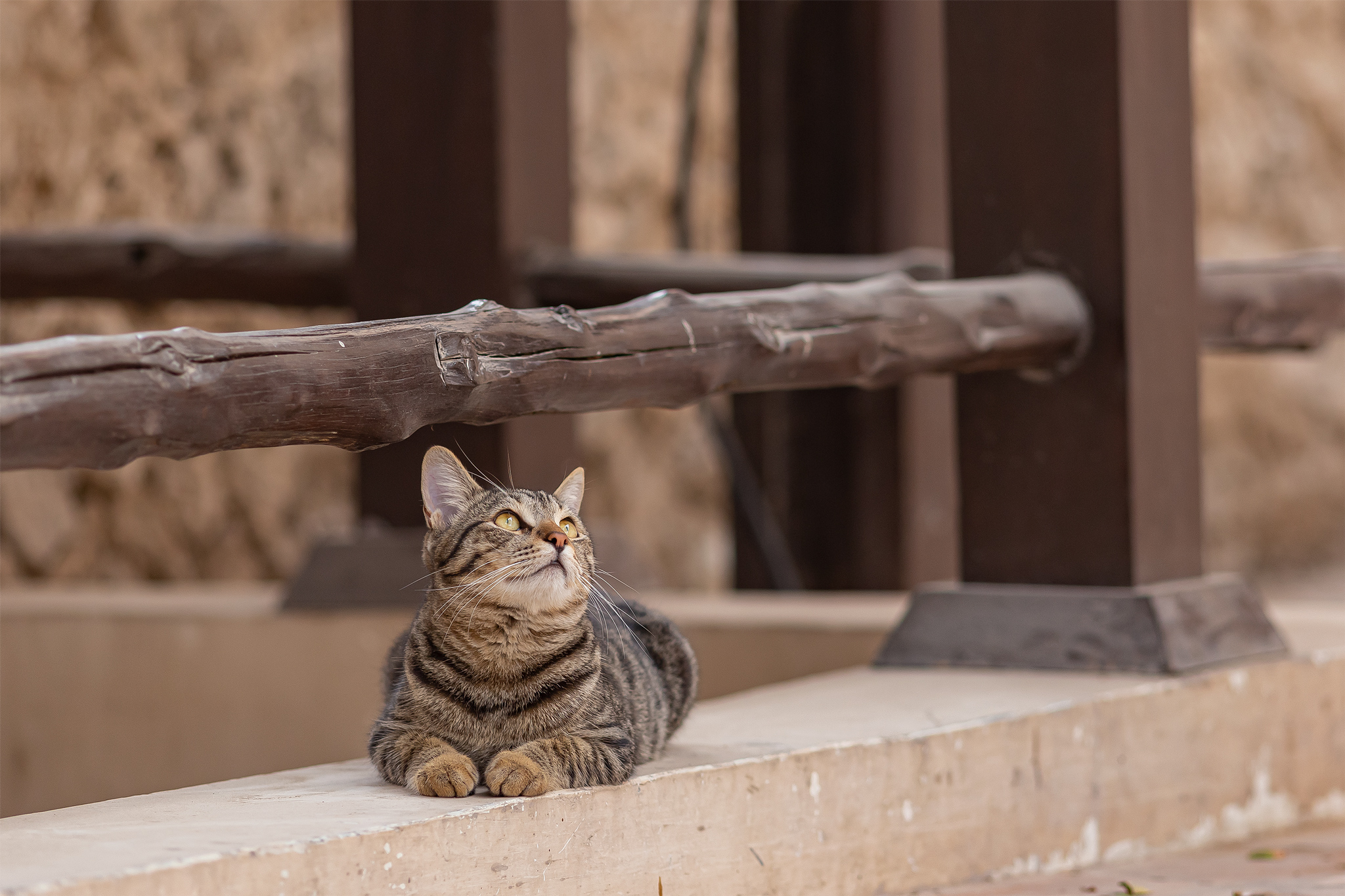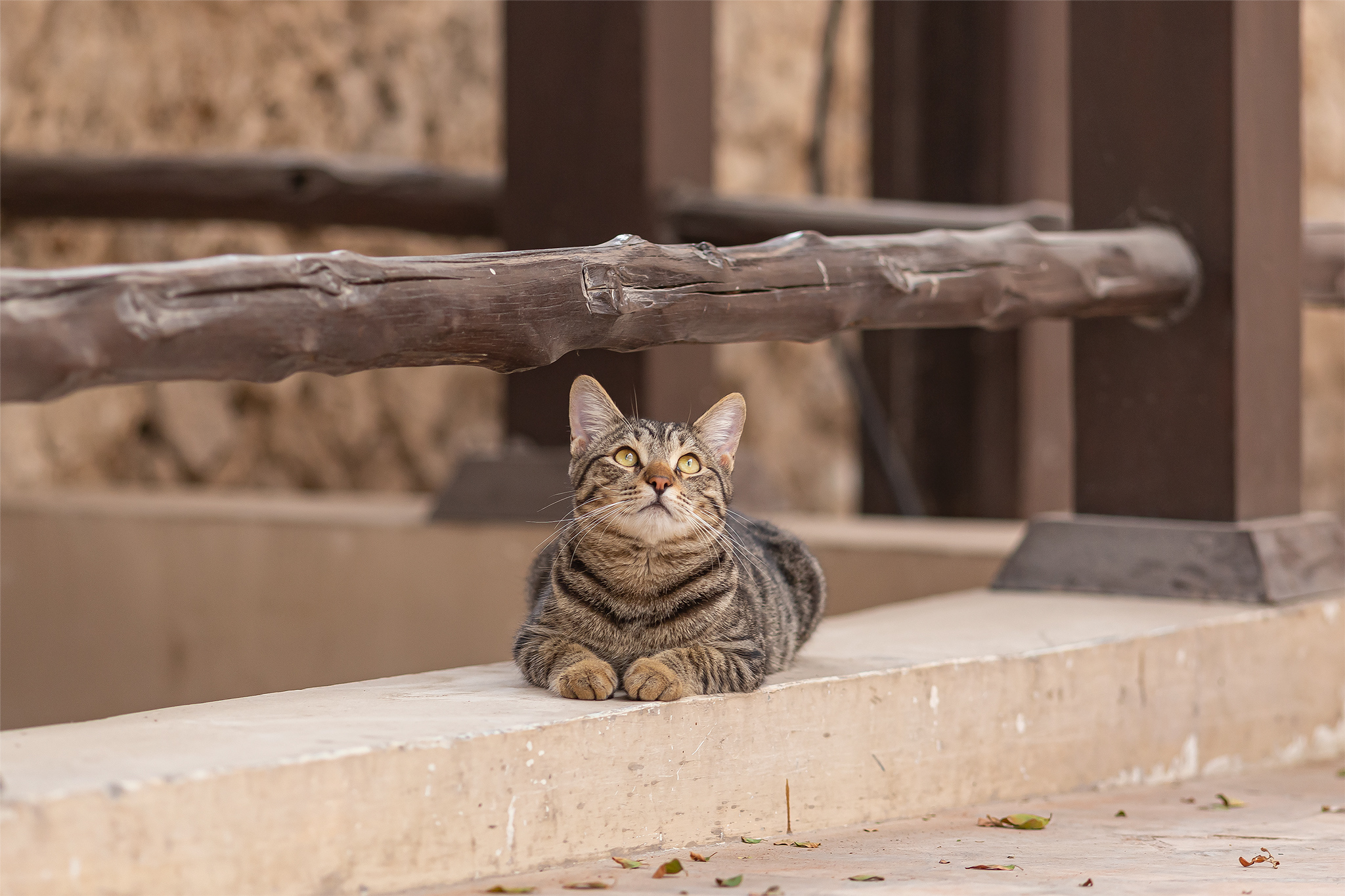 아까부터 하늘을 계속 처다보고 있는 두바이의 길 고양이