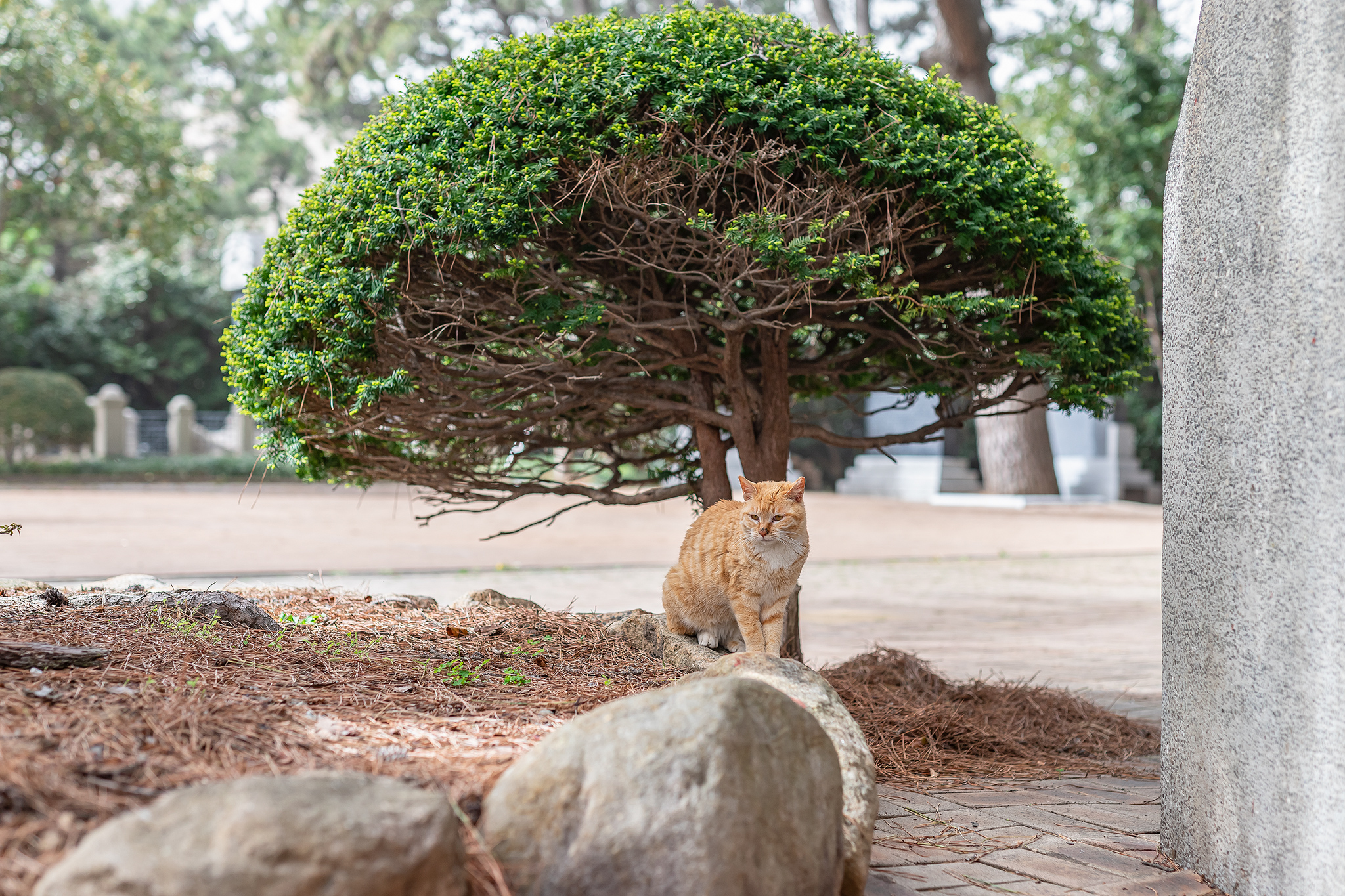 부산의 관광지의 고양이들은 잘 보호받고 사람들과 친하게 지내고 있는 것 같습니다.