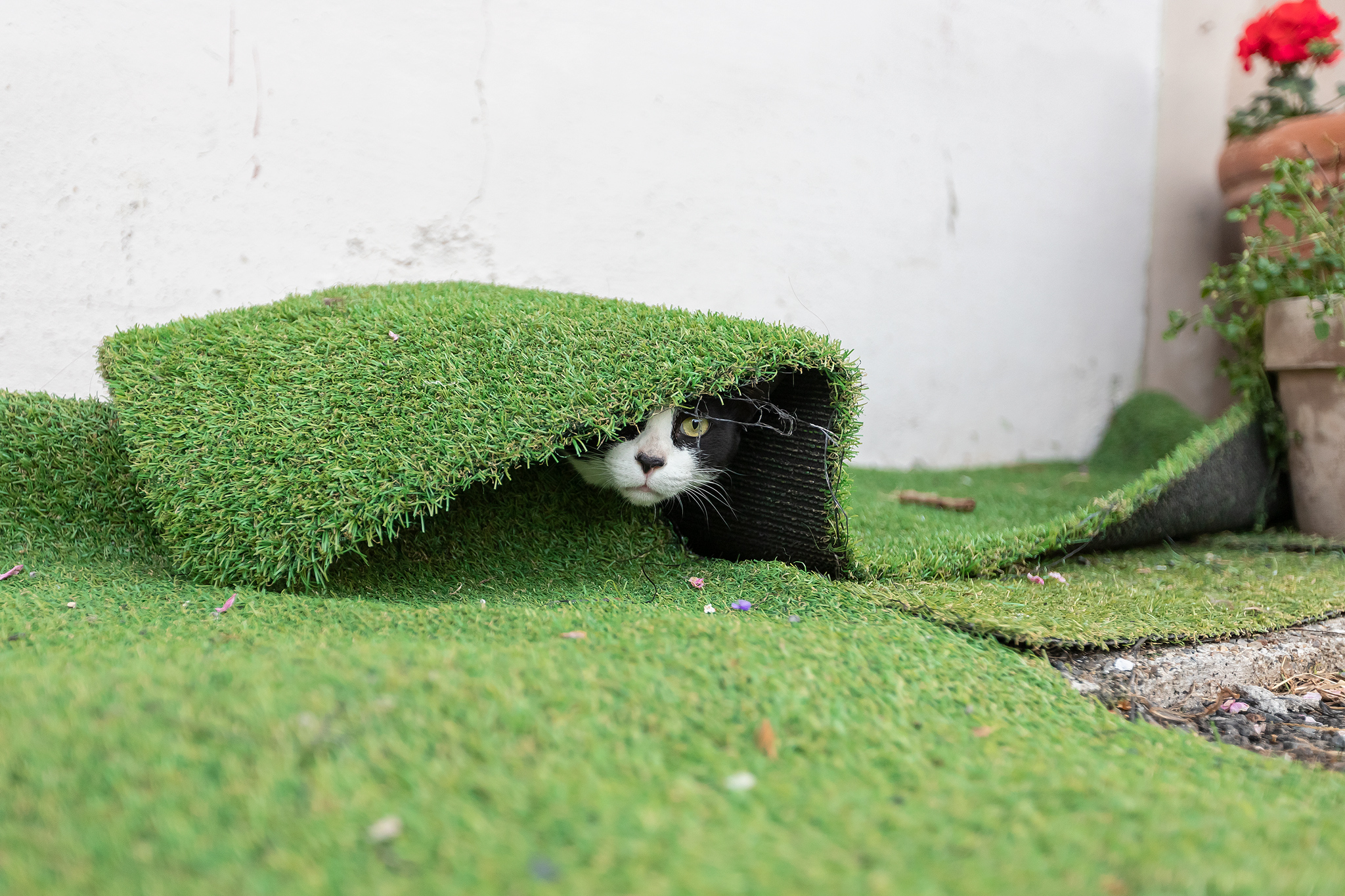 잠복중인 턱시도 고양이