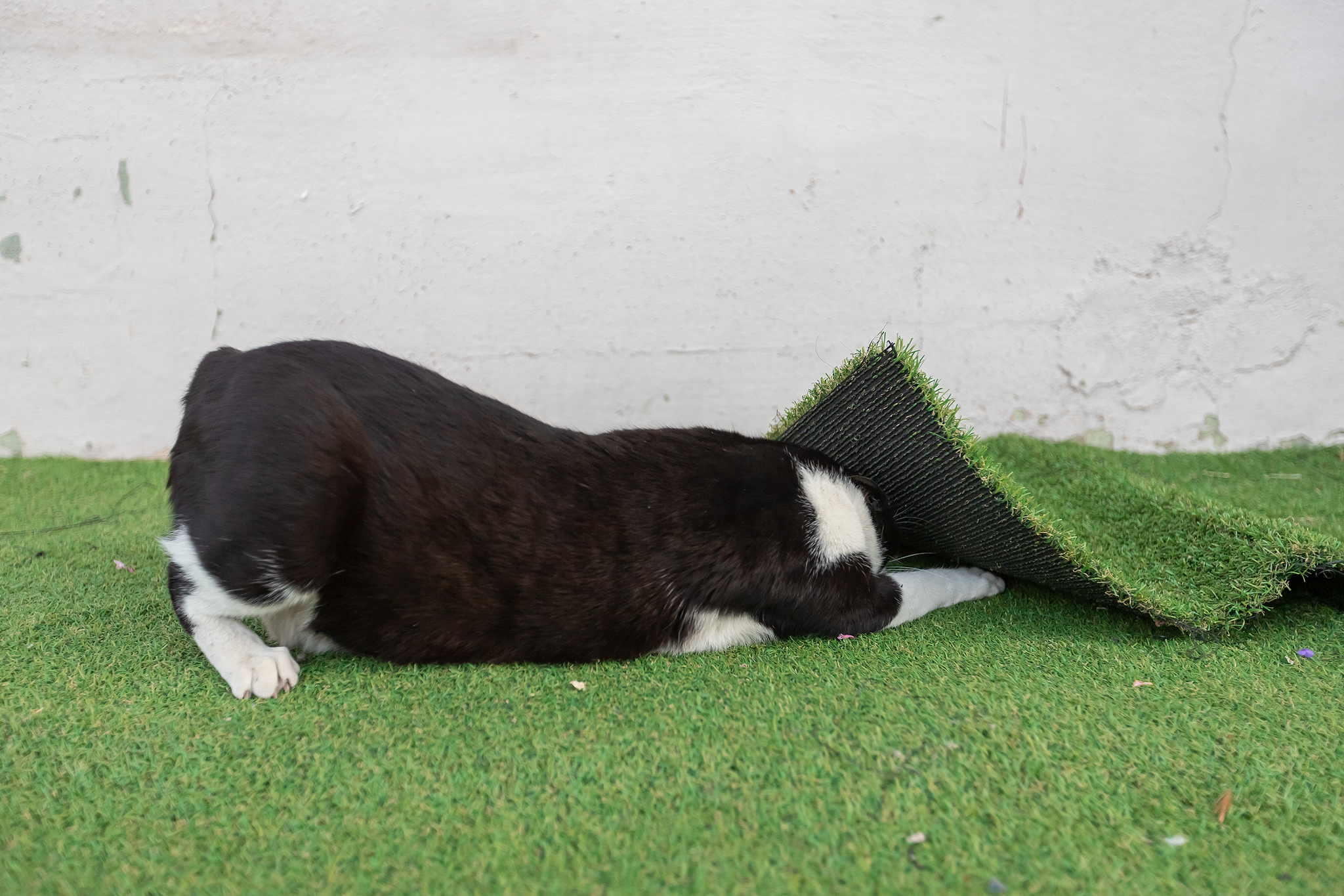 거꾸로 벽을 타는 턱시도 고양이