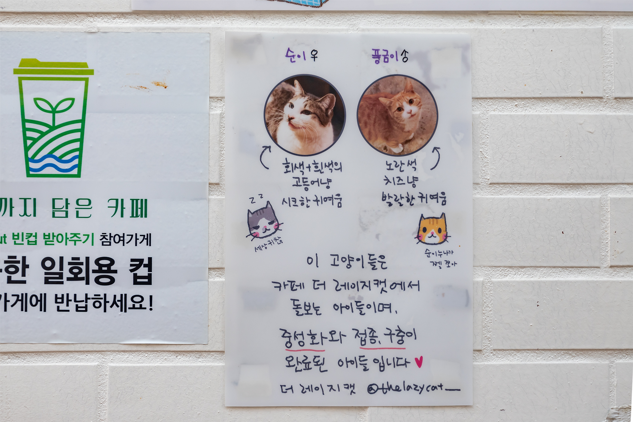 이곳 냥이들은 길 고양이가 아니라 집사가 있는 카페 냥이
