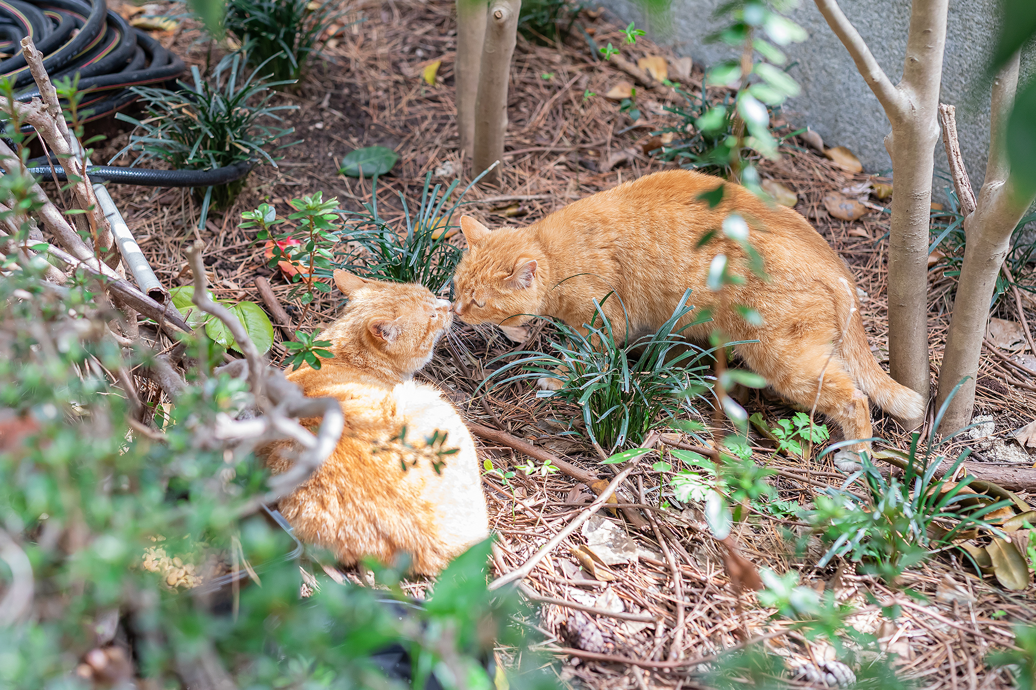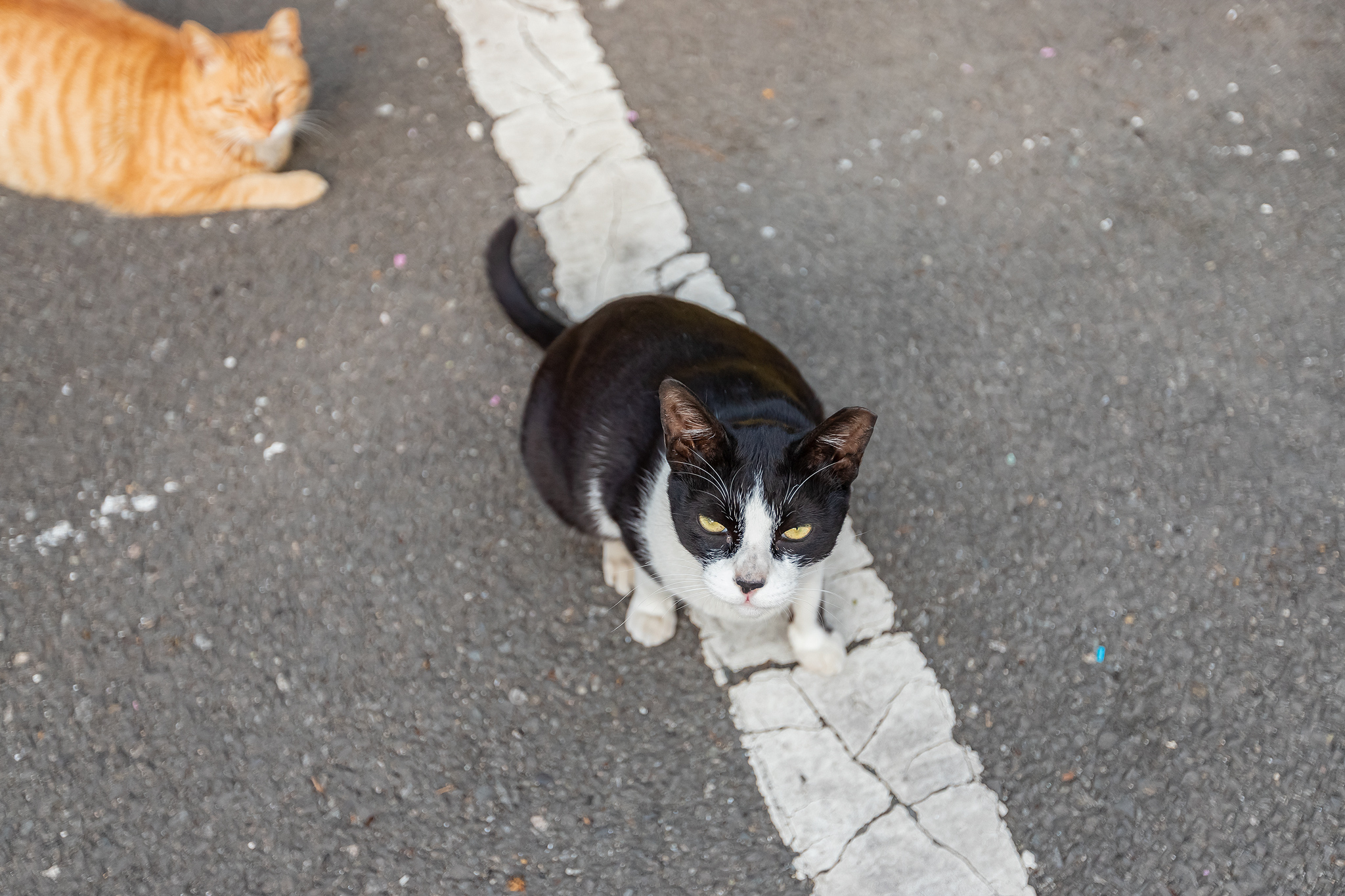 동백섬 운대산 최치원 유적 근처에서 만난 커플로 추정되는 노란 길 고양이들