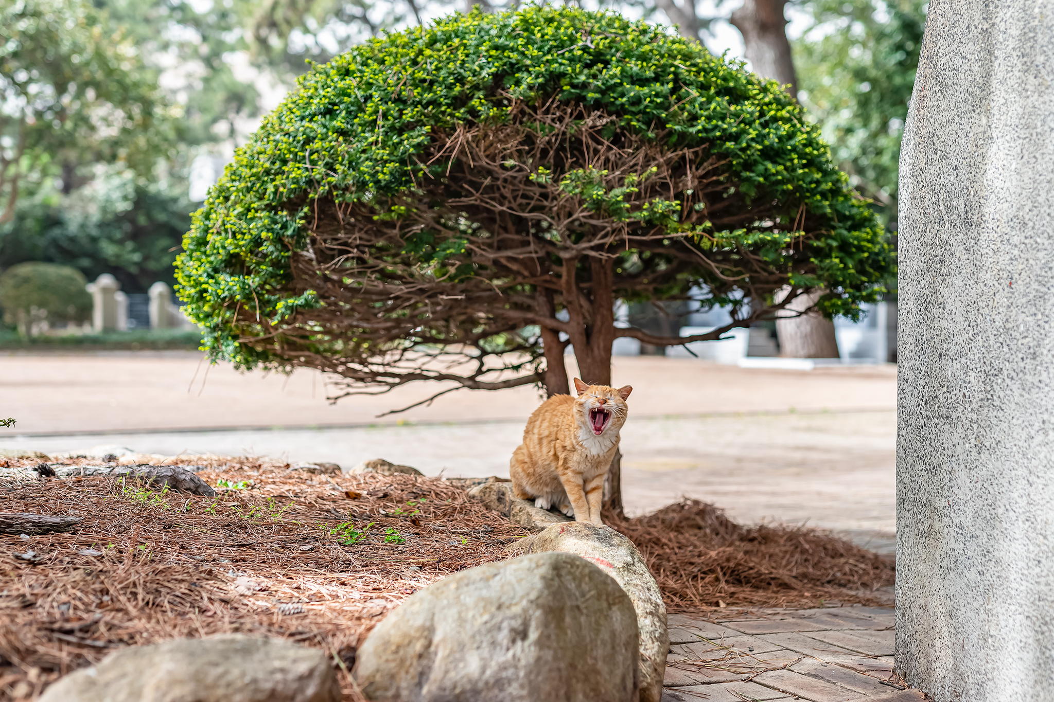 최치원 선생비 인근에서 크앙하는 길 고양이
