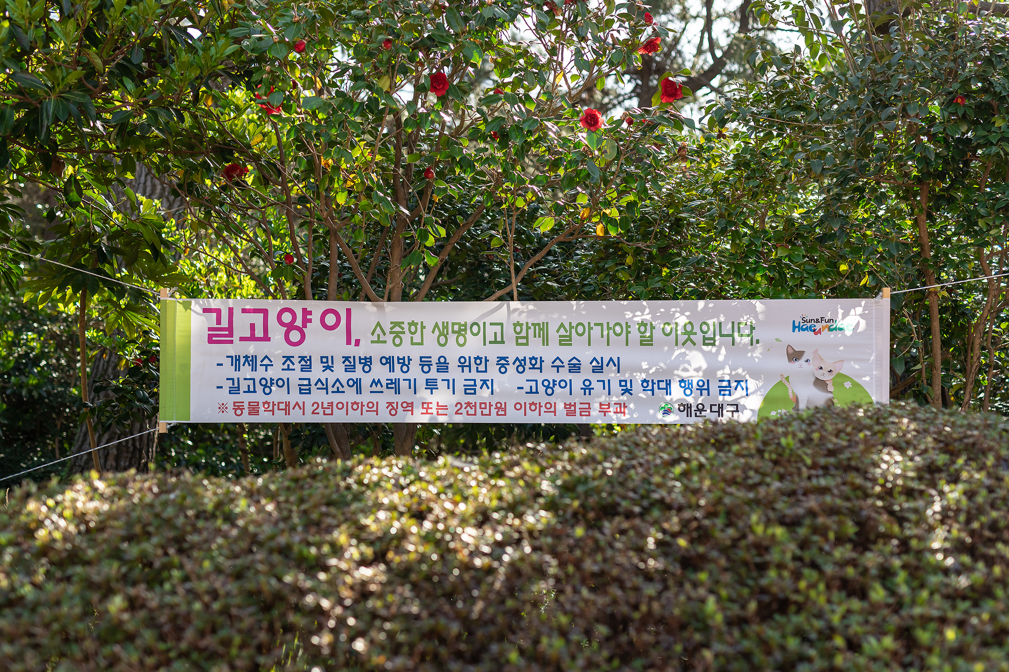 동백섬에는 길 고양이 집도 많고 숲 곳곳에서 길 고양이들을 만날 수 있었습니다.