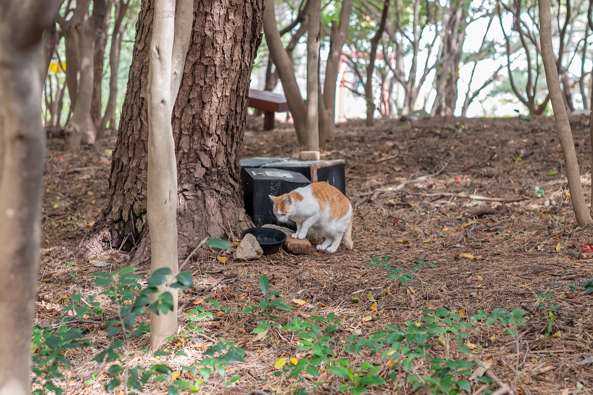 숲 곳곳에 시커먼 박스 같은게 있어 뭔가 했었는데 길 고양이들 집이였습니다.