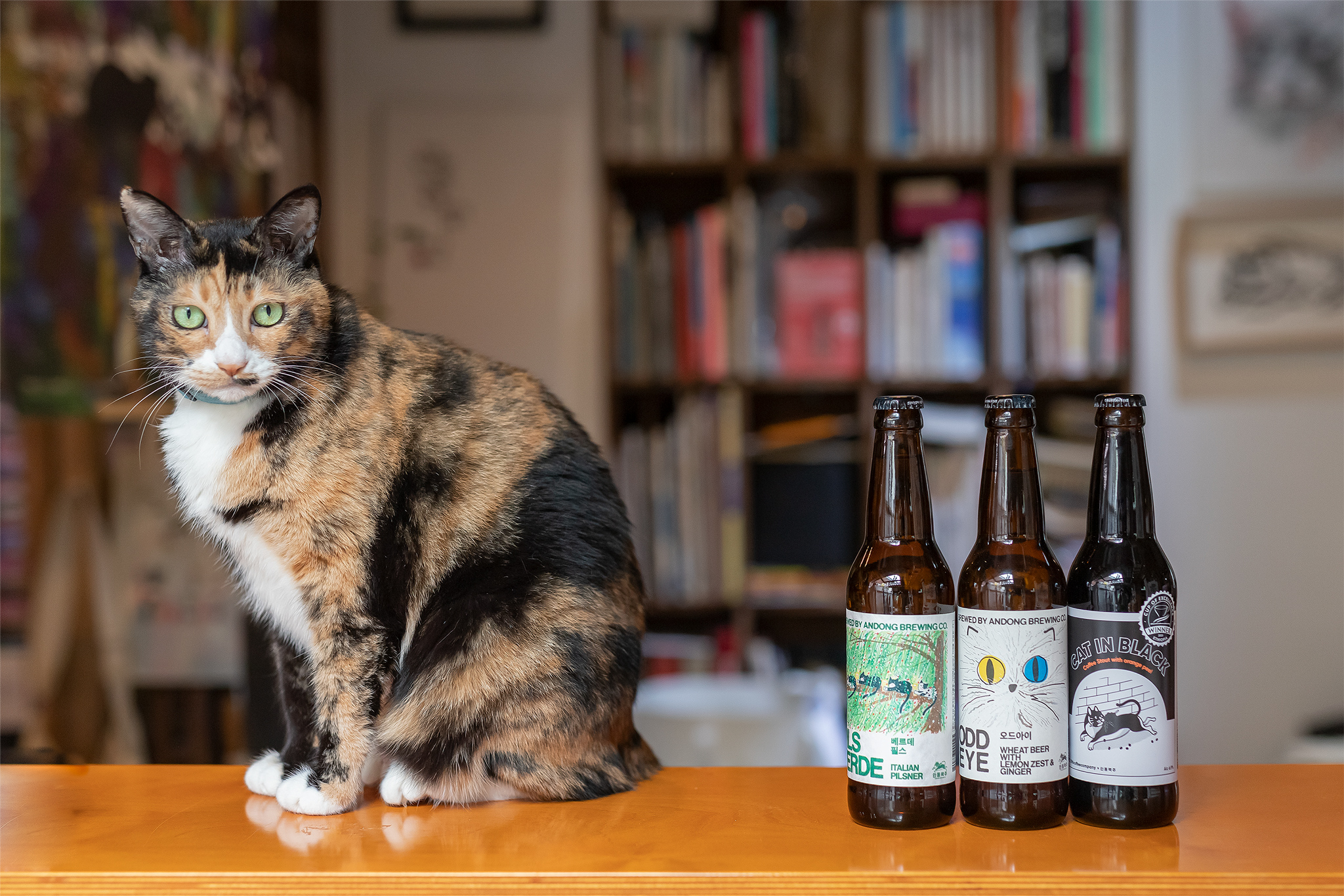 책방에서 판매하고 있는 고양이 맥주가 이뻐서