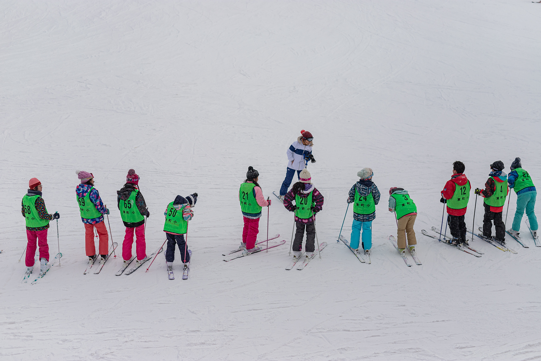 스키를 배우기 위해 이곳을 찾은 단체 스키어들이 많았습니다.