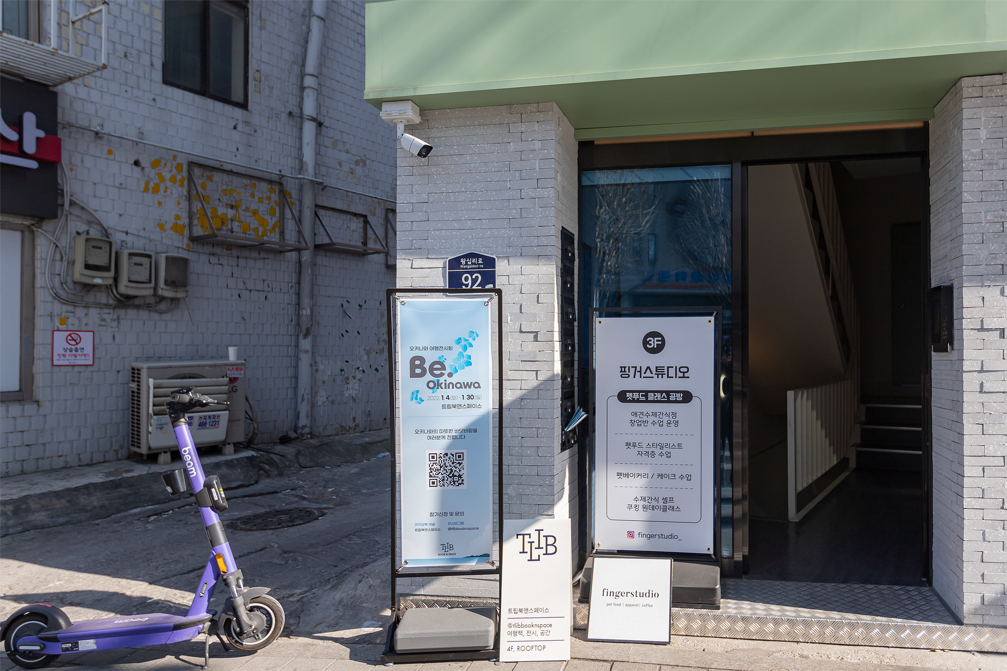 요즘 핫플레이스인 성수의 서울숲 역 인근에 있는 트립북앤스페이스에서 오키나와 여행 전시회가 열려 찾아가 보았습니다. 트립북앤스페이스는 성수동1가에 있는 여행 서점으로 관광학을 전공한 운영진의 관심과 사심으로 선별한 여행과 관광, 로컬 관련 콘텐츠를 책과 전시를 통해 공유하고 있습니다. 서울숲 전망을 즐길 수 있는 루프탑 공간이 인상적이며 여행하는 지식서재 Traveling LIBrary를 목표로 여행의 사회적 영향과 역할을 고민하는 공간이 되고자 하고 있는 곳 입니다.