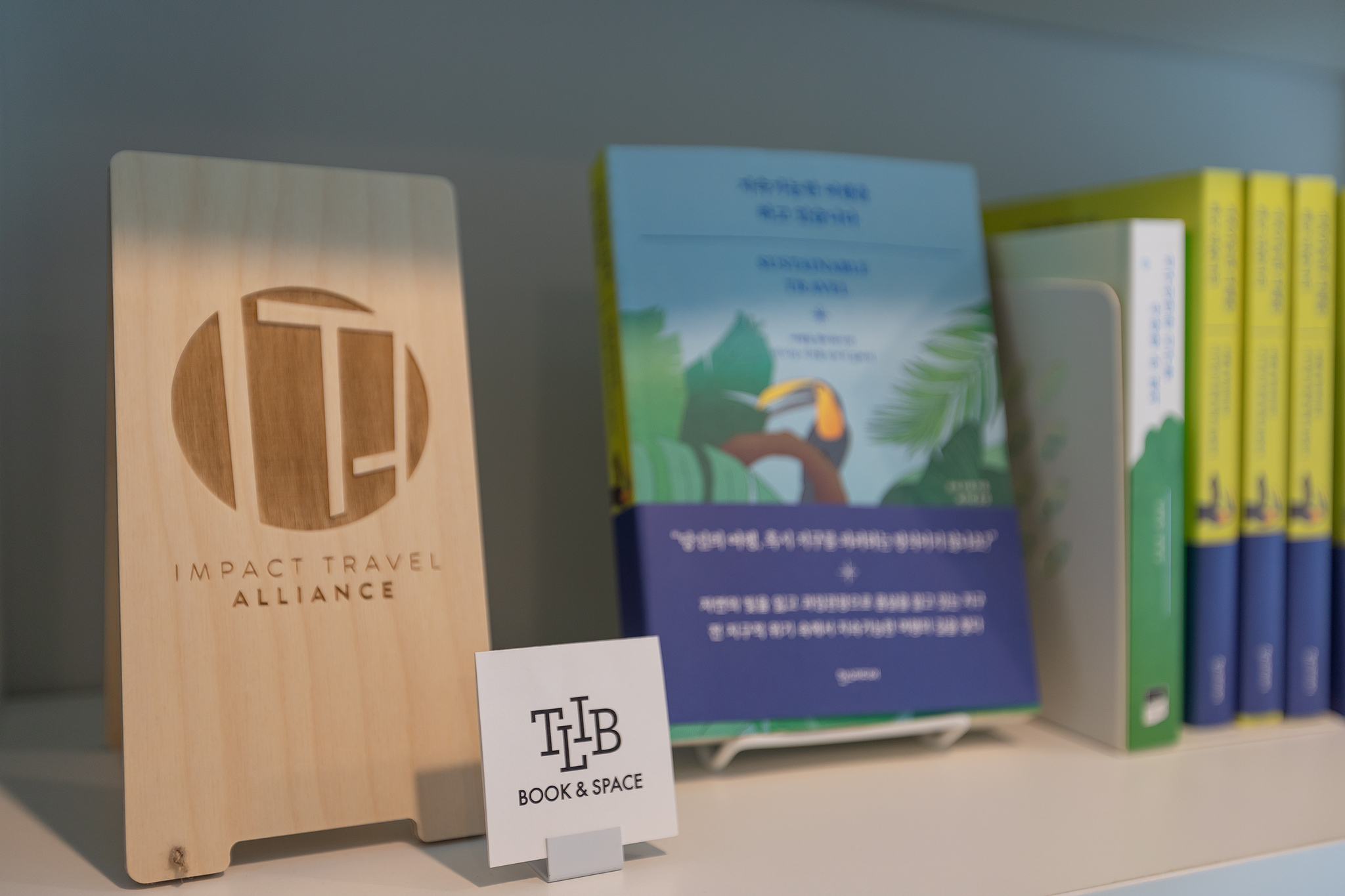여행이 미치는 다양한 영향력을 알리고 연구하는 NGO 단체인 IMPACT TRAVEL ALLIANCE의 소개와 활동 관련 서적들이 전시되어 있었습니다. 트립북앤스페이스는 IMPACT TRAVEL ALLIANCE 한국 지부이기도 합니다.