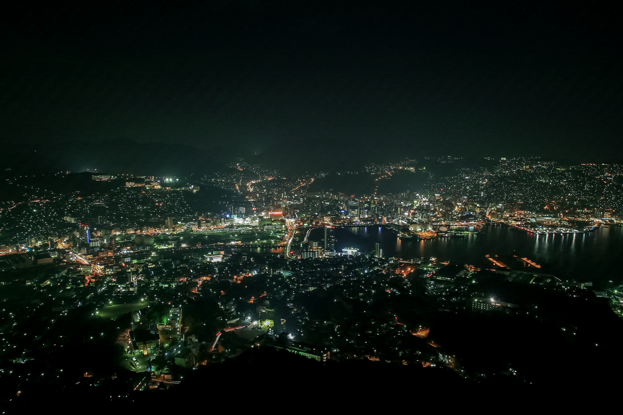 나가사키는 일본을 대표하는 야경 명소 중 한 곳으로 다양한 야경 스폿이 있습니다. 학의 항구'라고 불리우는 나가사키항을 중심으로, 산들이 둘러싸고 있는 둥근 형태의 지형. 항만에서 구릉부가 갑자기 융기한 지형인 탓에 다이나믹한 야경을 감상할 수 있는 많습니다. 나가사키 야경은 이나사야마 산의 야경이 가장 유먕하며 맞은편 해안의 나베칸무리 산이나 구라바 정원, 구라바 스카이 로드, 시내 북쪽에 위치한 다테야마, 가자가시라 공원 등이 있습니다.