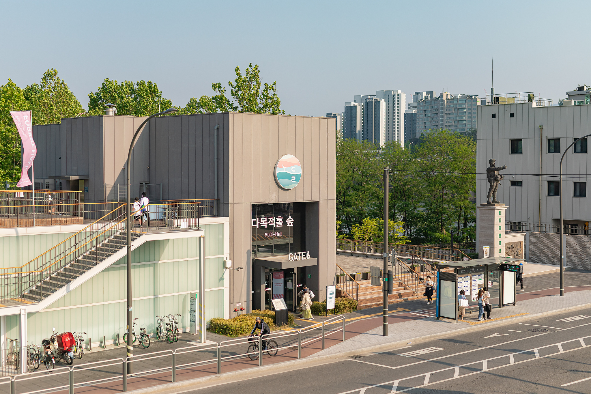 노들섬의 입구에는 버스 정거장이 있어 내리면 바로 섬으로 내려갈 수 있습니다.