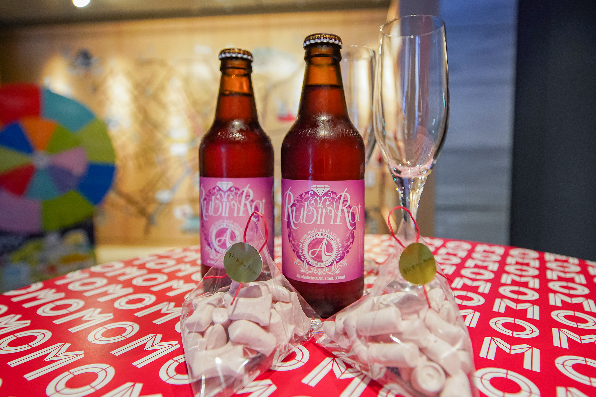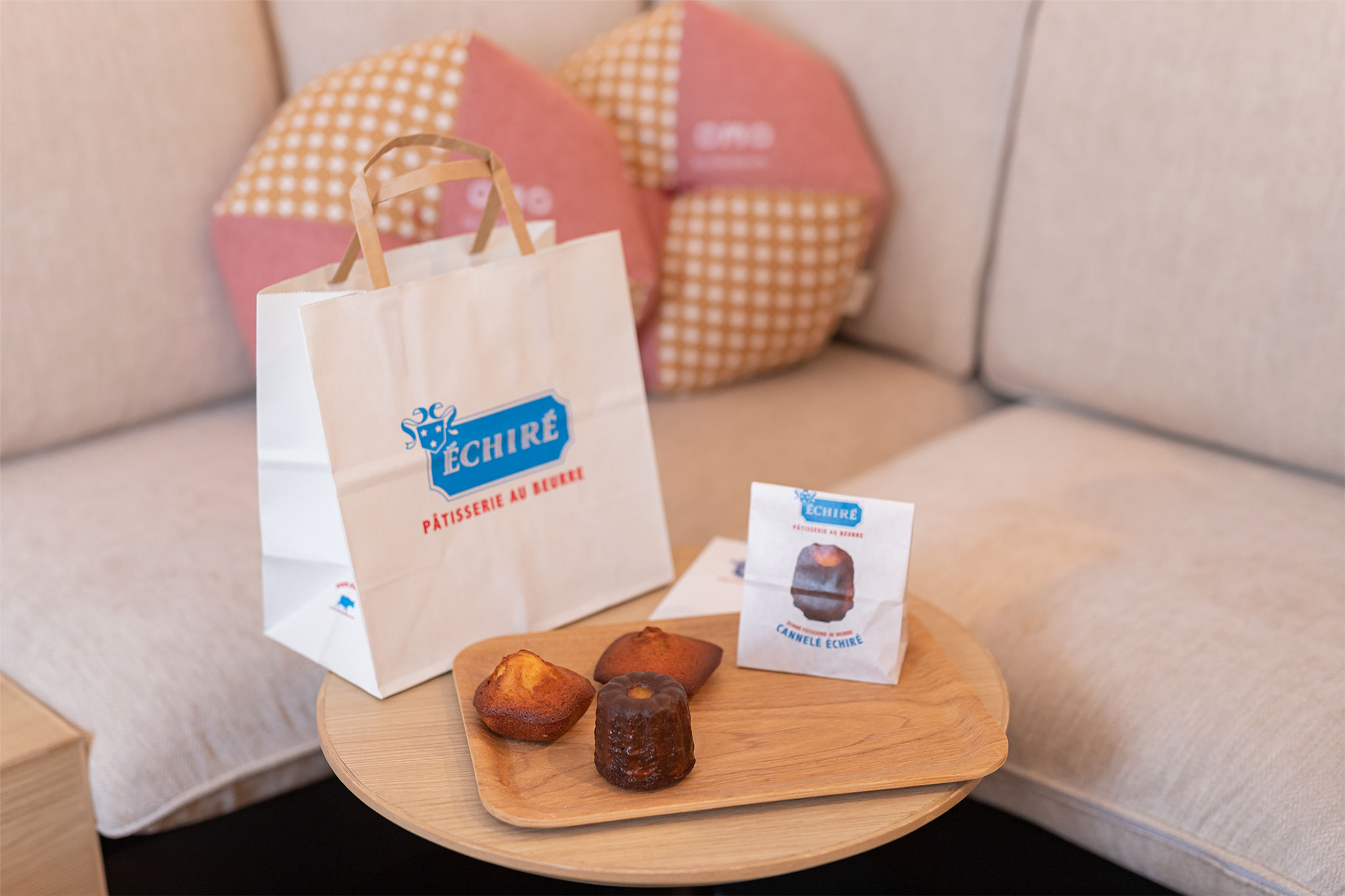 호텔의 테이블에서 거래처에 선물로 줄 맥주와 기념으로 구입한 에쉬레의 디저트를 놓고 사진을 찍었습니다.
