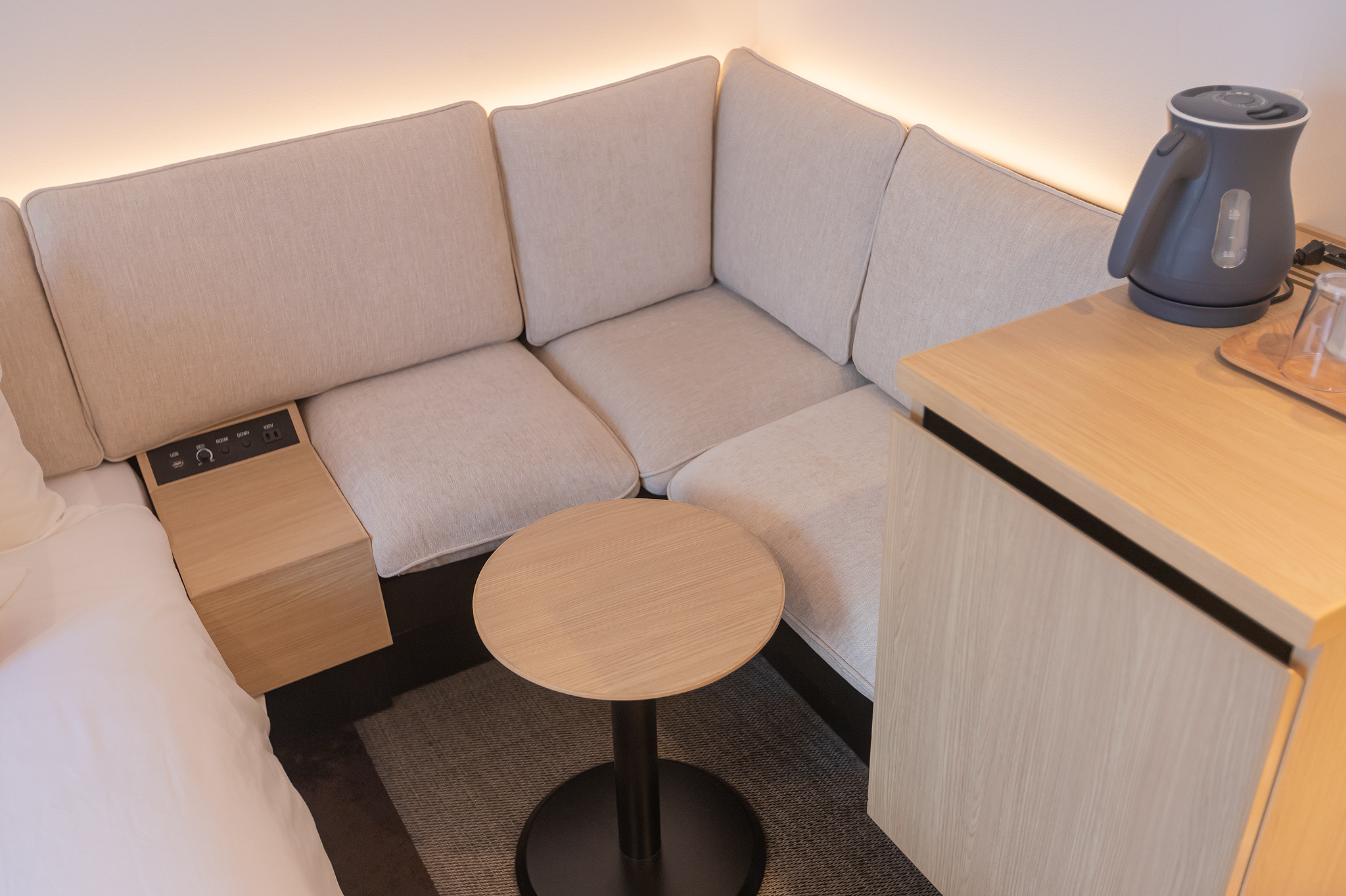 다용도로 사용될 수 있는 소파와 작은 테이블