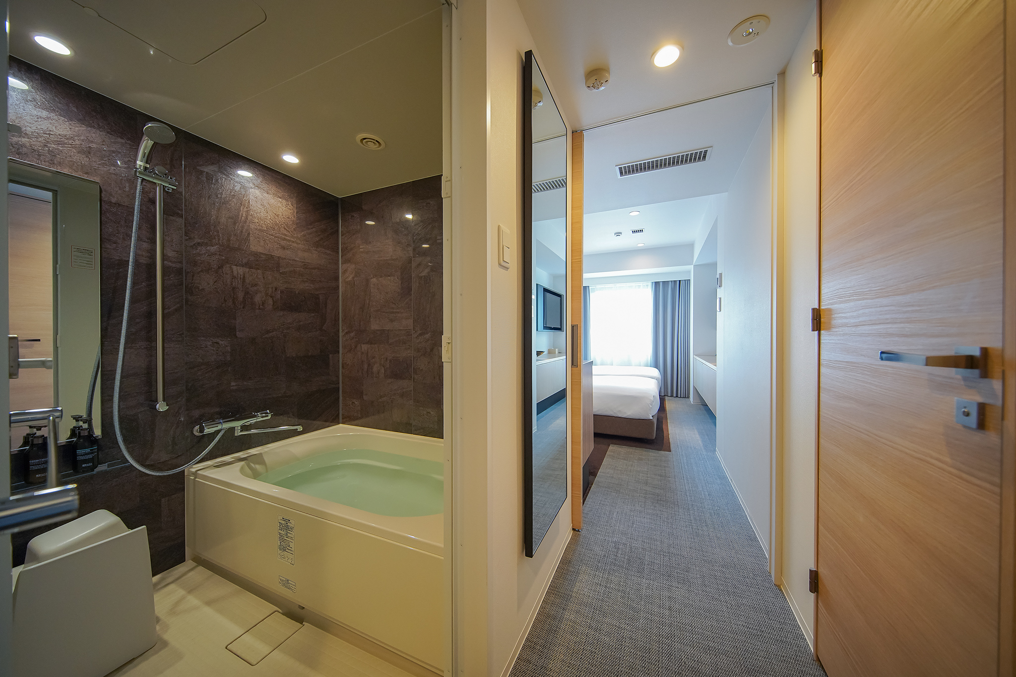 보통 도쿄의 비지니스 급의 호텔에는 욕조가 없거나 있어도 발을 구부리고 들어가야 되는 작은 욕조인데