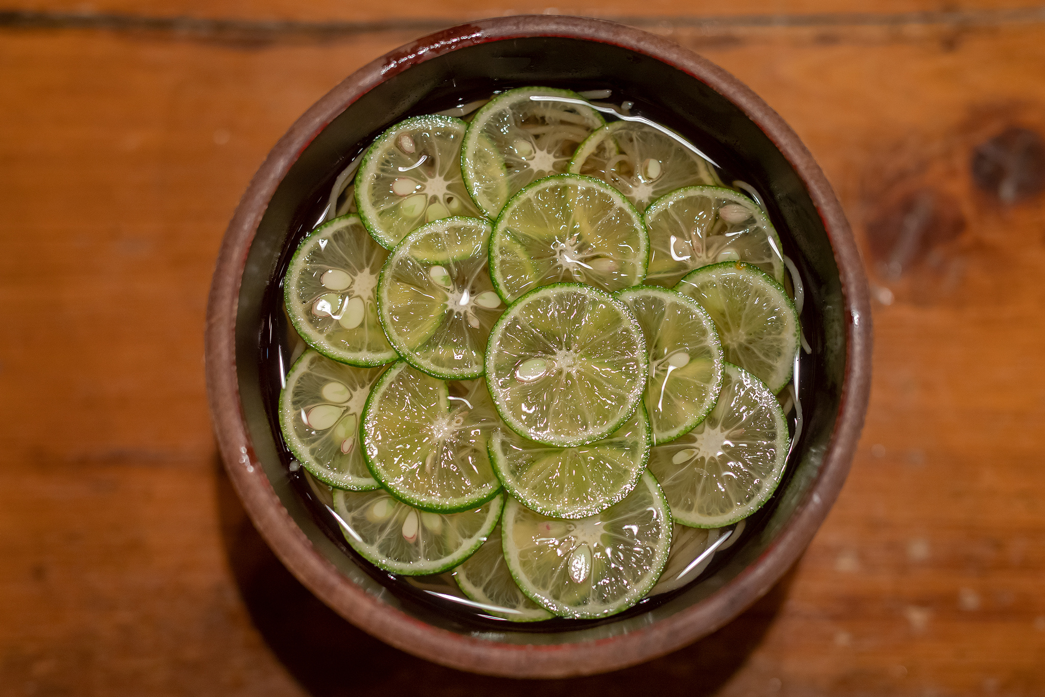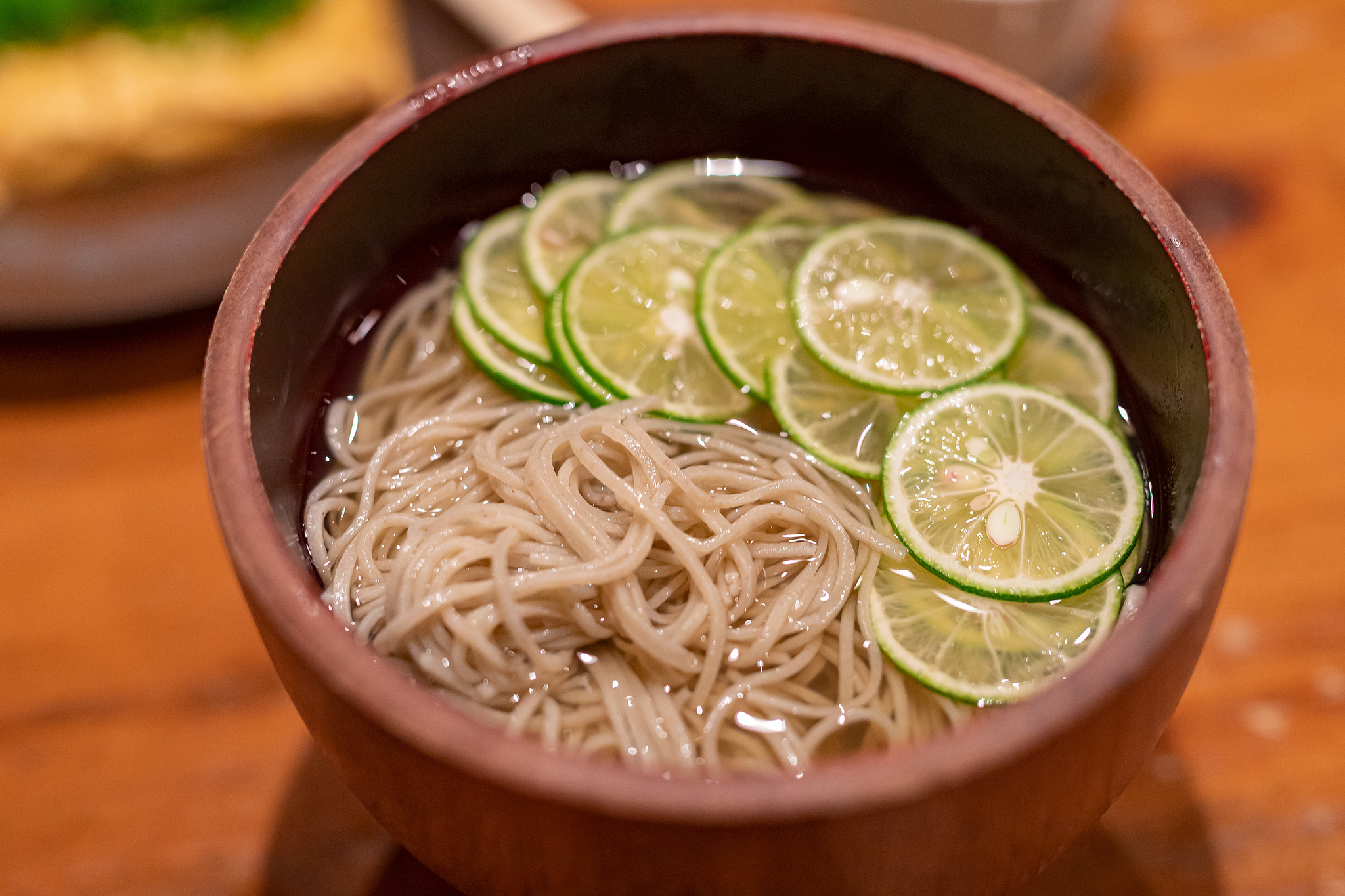 청귤의 상큼함과 떫은 맛이 차가운 소바를 더욱 시원하게 해줍니다.