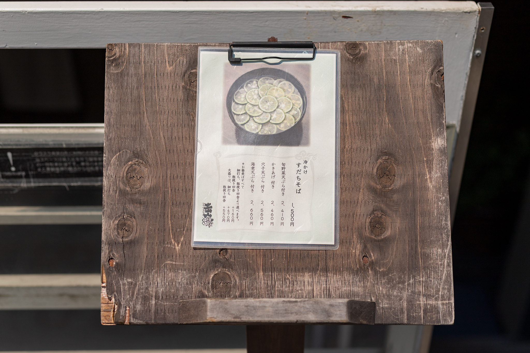 여름이라 그런지 가게 입구의 메뉴에 오늘 맛 볼 스다치 소바(すだちそば)가 보입니다.