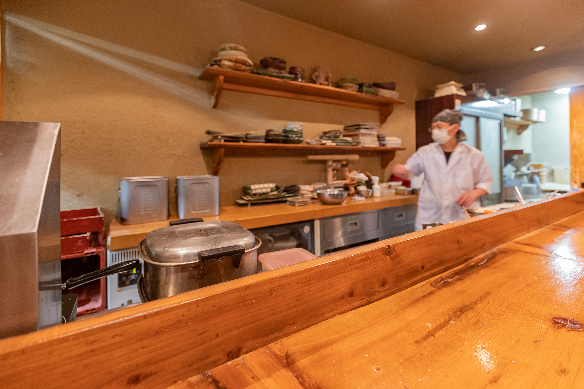 혼자서 편하게 먹을 수 있는 넓은 카운터 석과 편하게 앉아서 먹을 수 있는 테이블 석이 마련되어 있습니다.
