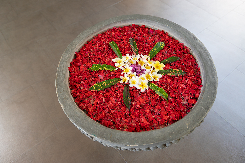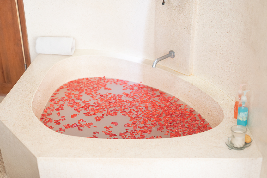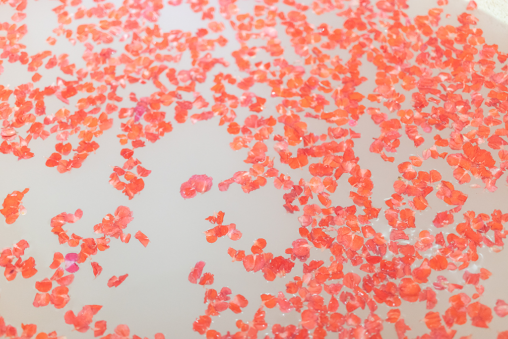 마사지가 끝나고 나면 꽃잎이 둥둥 떠있는 밀크 플라워 배스에서 몸을 씻습니다.