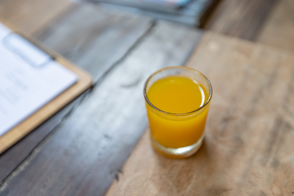 웰컴 드링크를 마시고 아로마 마사지에 사용할 4가지 향기 오일 중 하나를 고릅니다.