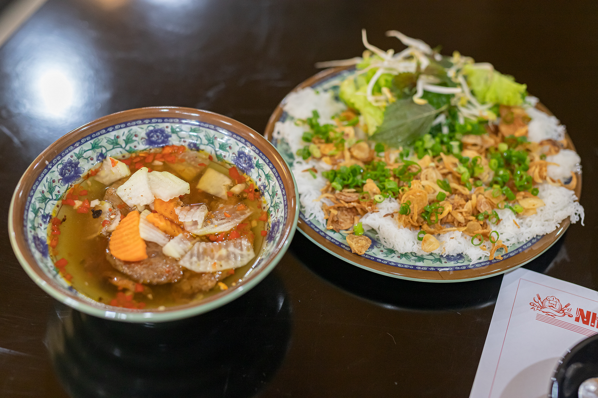 이곳의 인기 메뉴인 쌀국수는 45,000동, 2,500원 정도 이름과 스타일이 비슷한 가게인데도 가격은 3배 차이가 납니다.