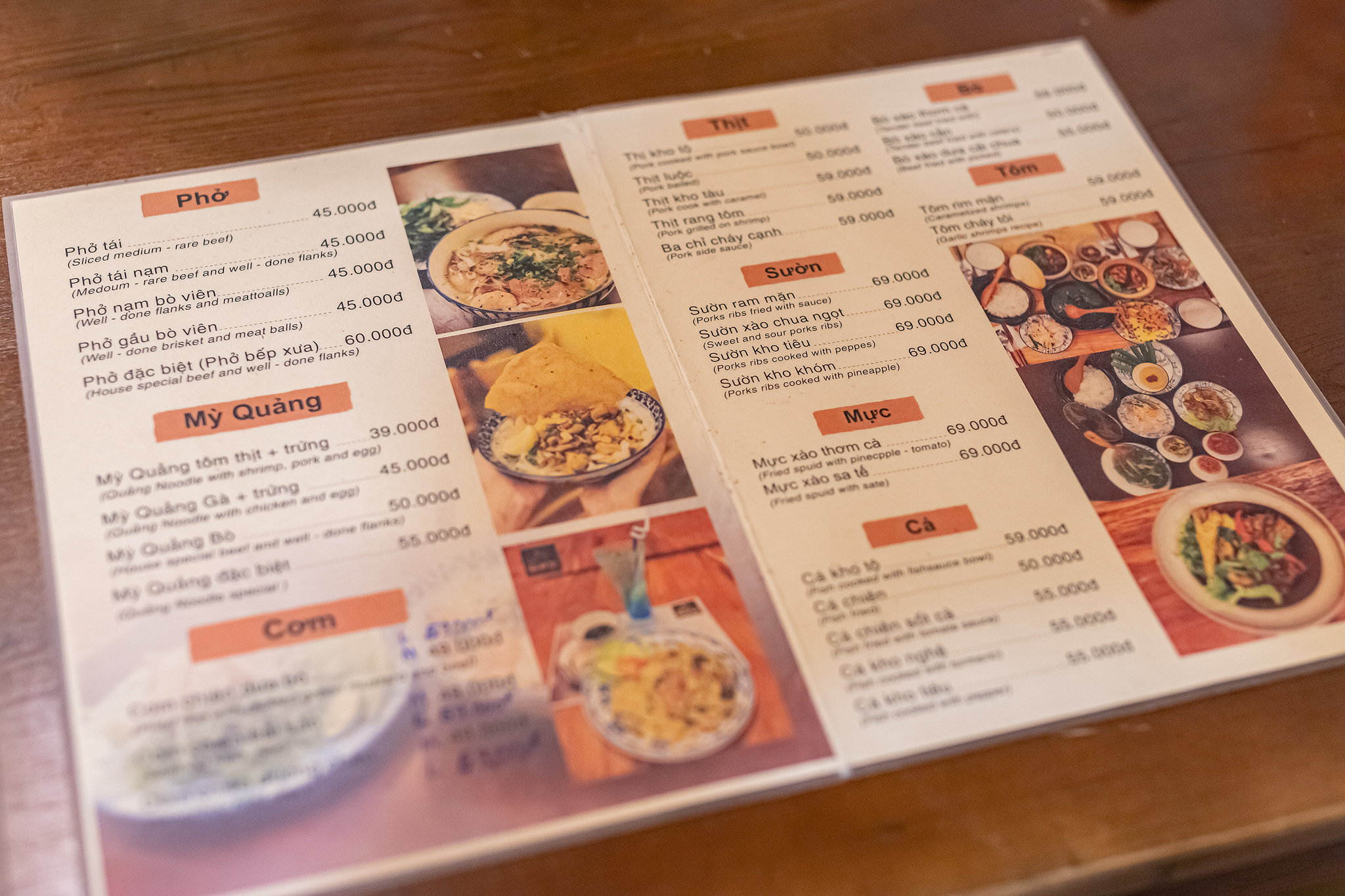 이곳의 인기 메뉴인 쌀국수는 45,000동, 2,500원 정도 이름과 스타일이 비슷한 가게인데도 가격은 3배 차이가 납니다.
