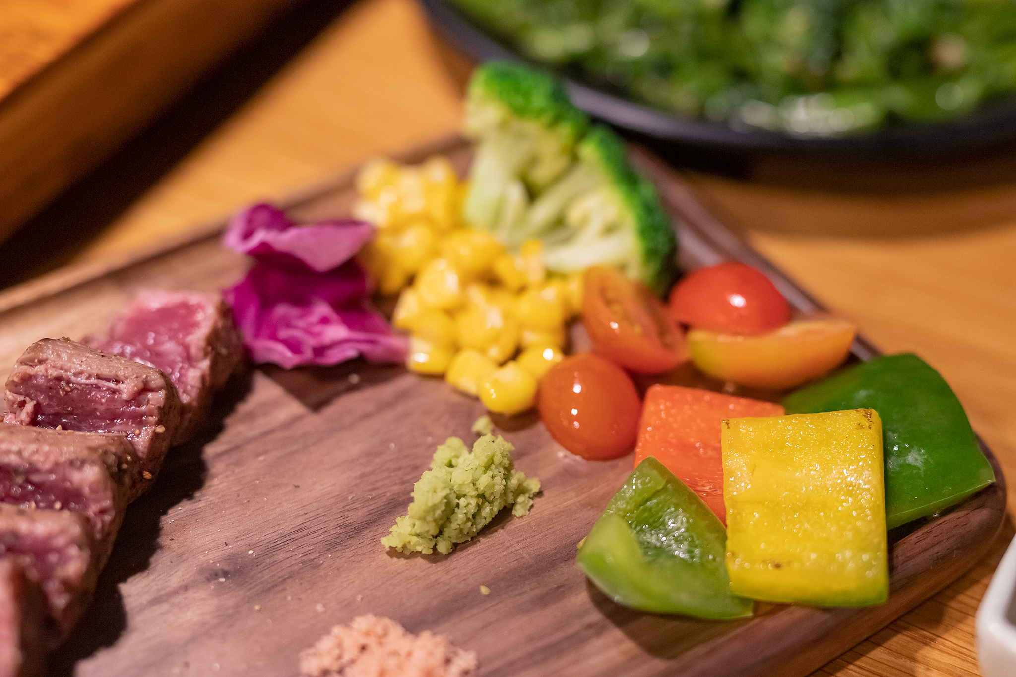 초벌 구이 된 고기와 야채가 플레이트에 별도로 제공됩니다.