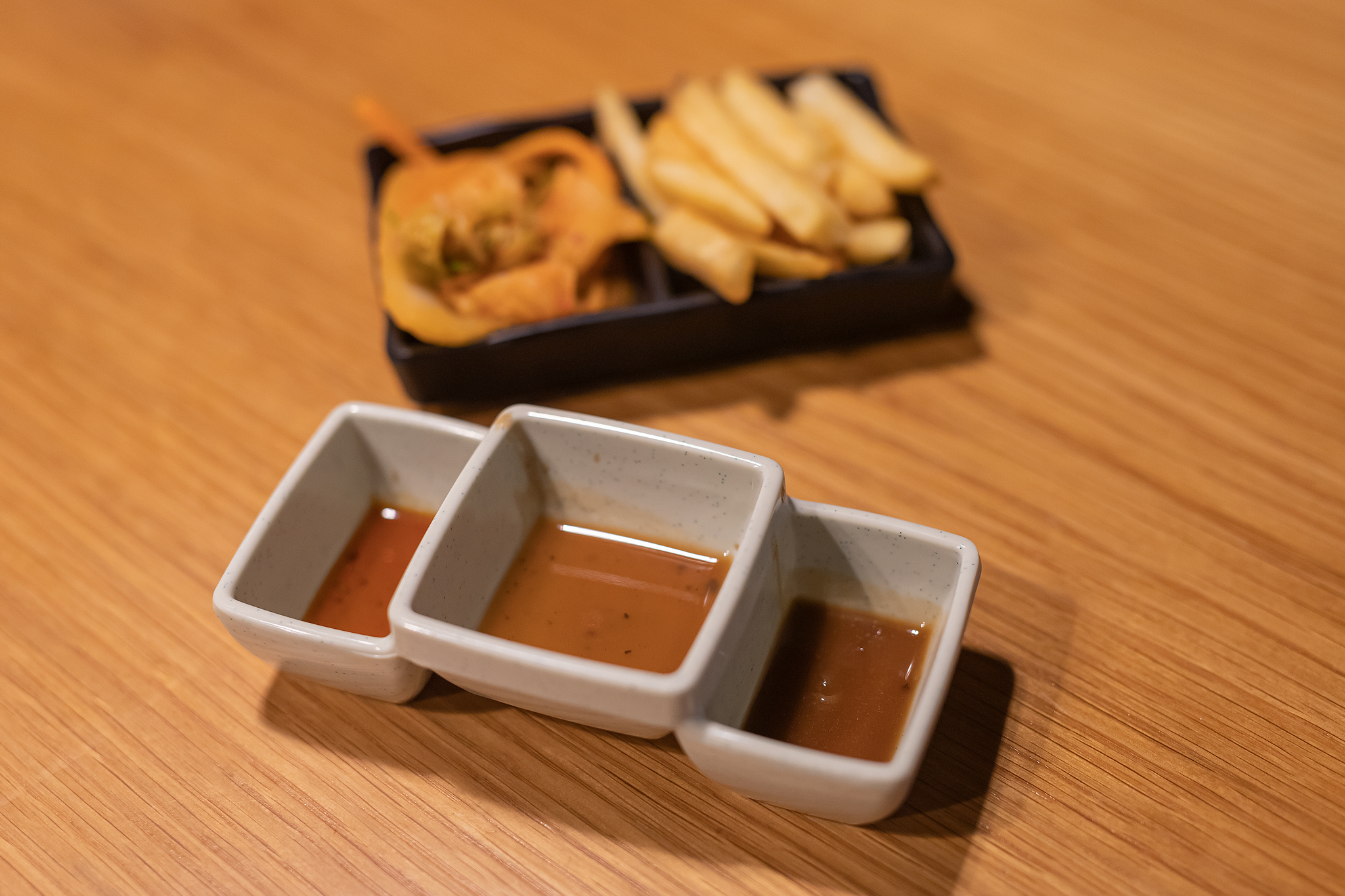 기본 반찬으로 김치와 감자 튀김이 놓입니다.