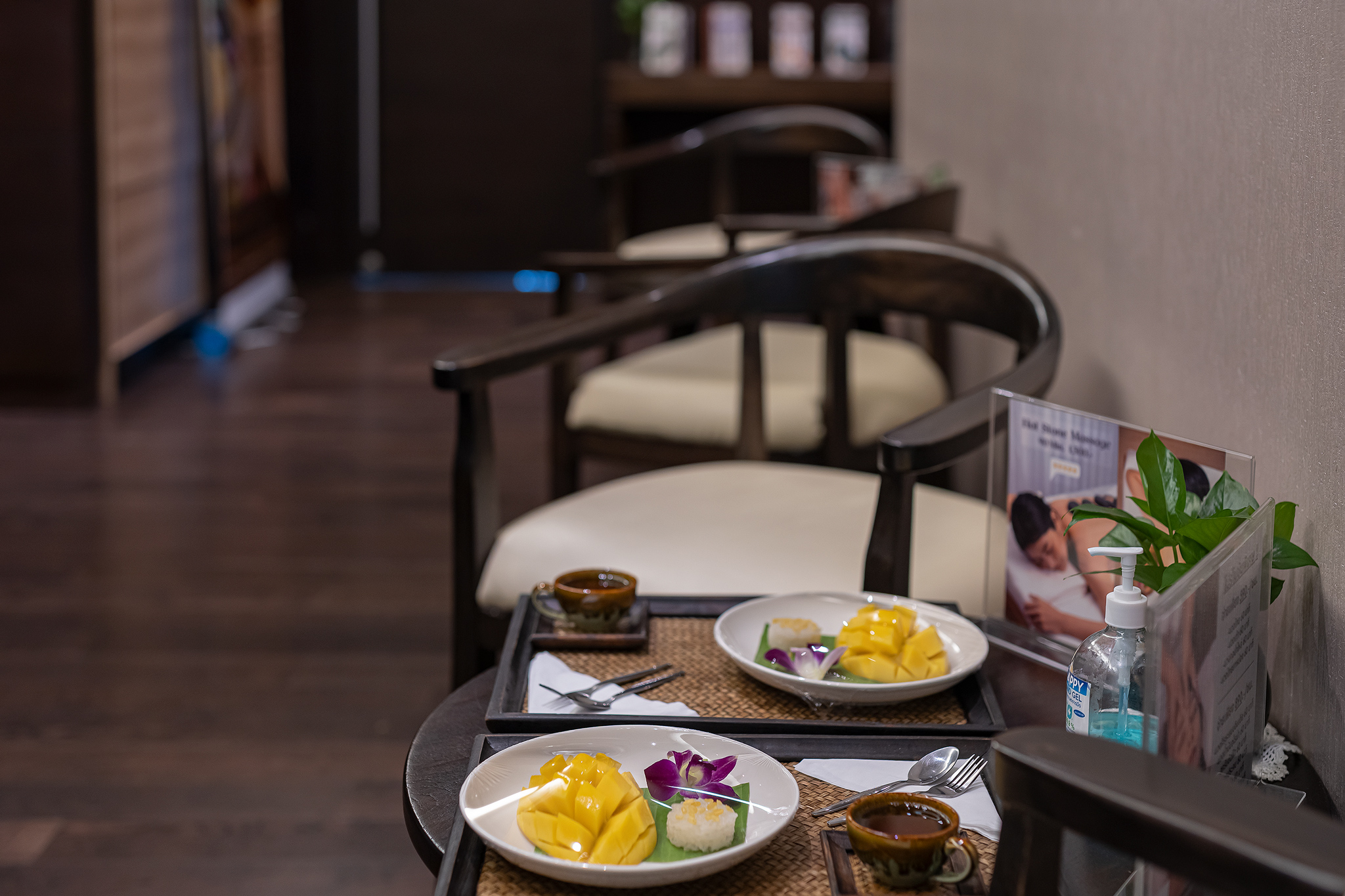 개운하게 마사지를 받고 나왔더니 차와 망고가 놓여 있었습니다.
