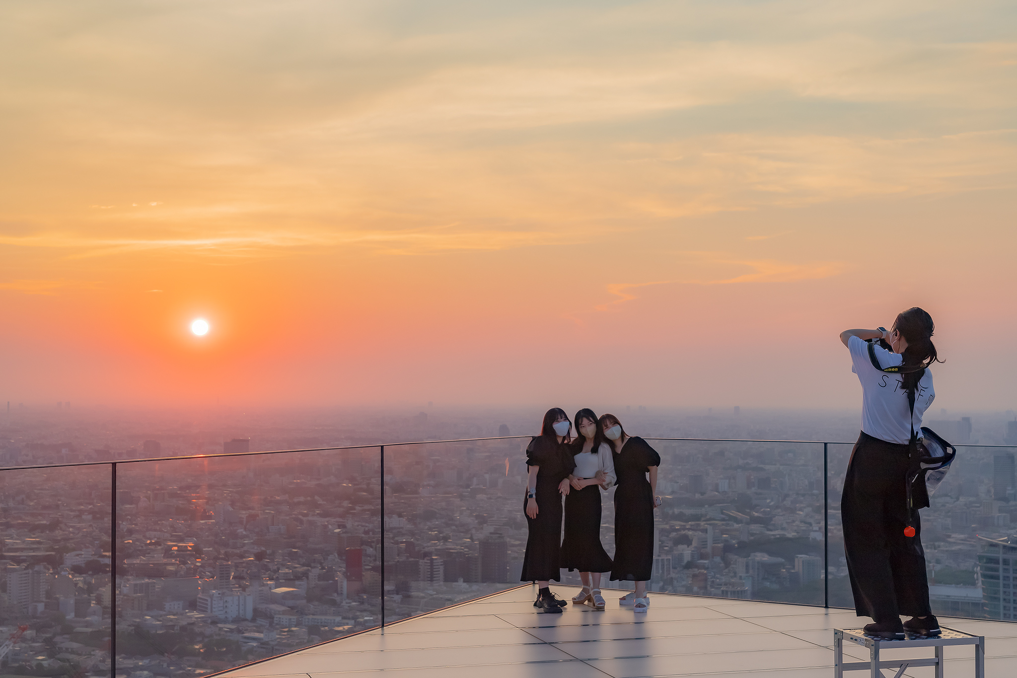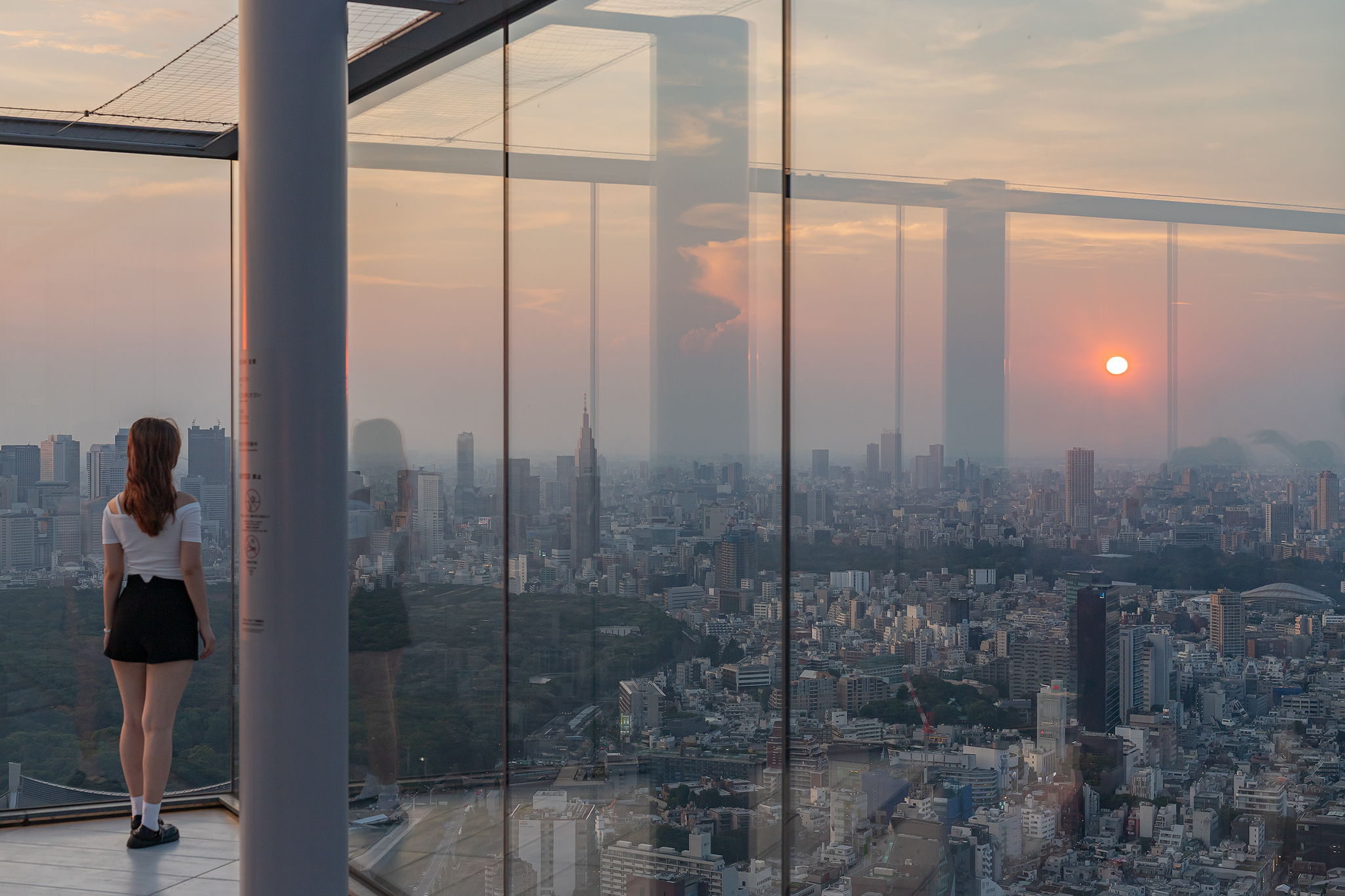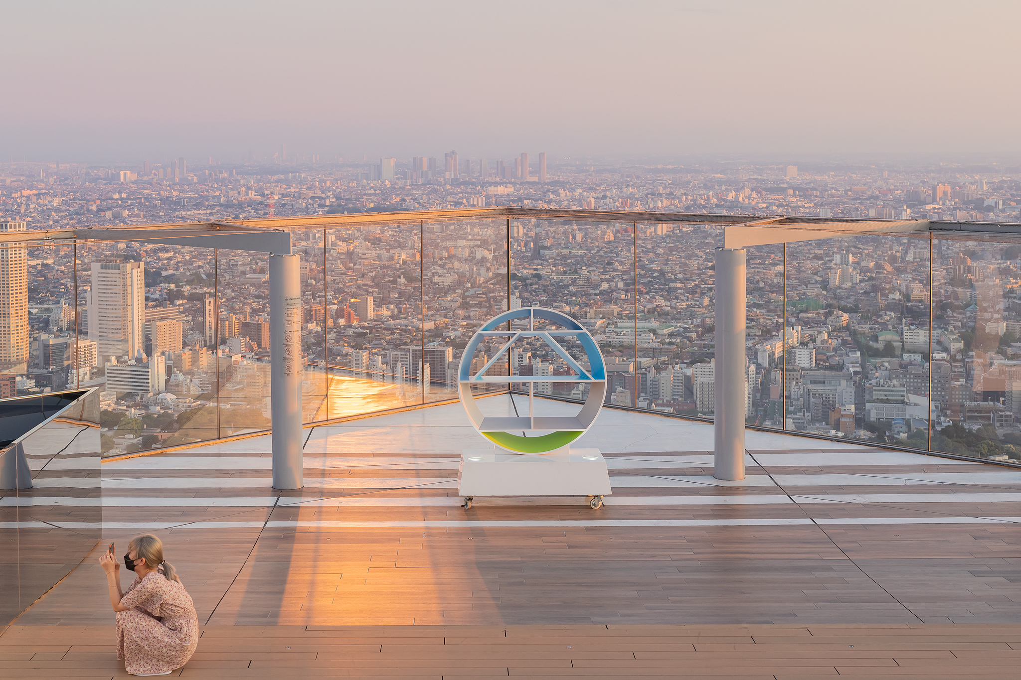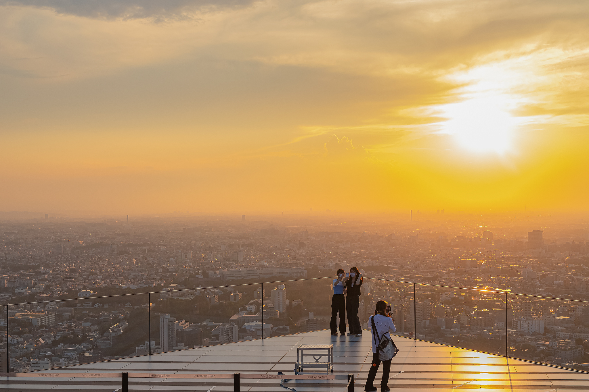 노을이 지기 시작하며 시부야 스카이에도 사람들이 늘어납니다.
