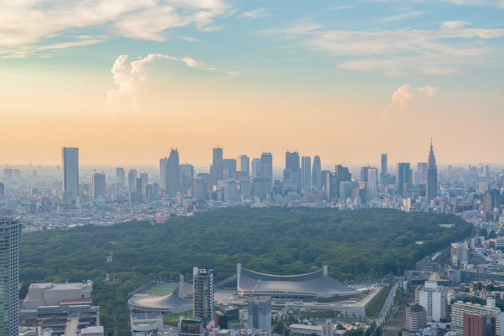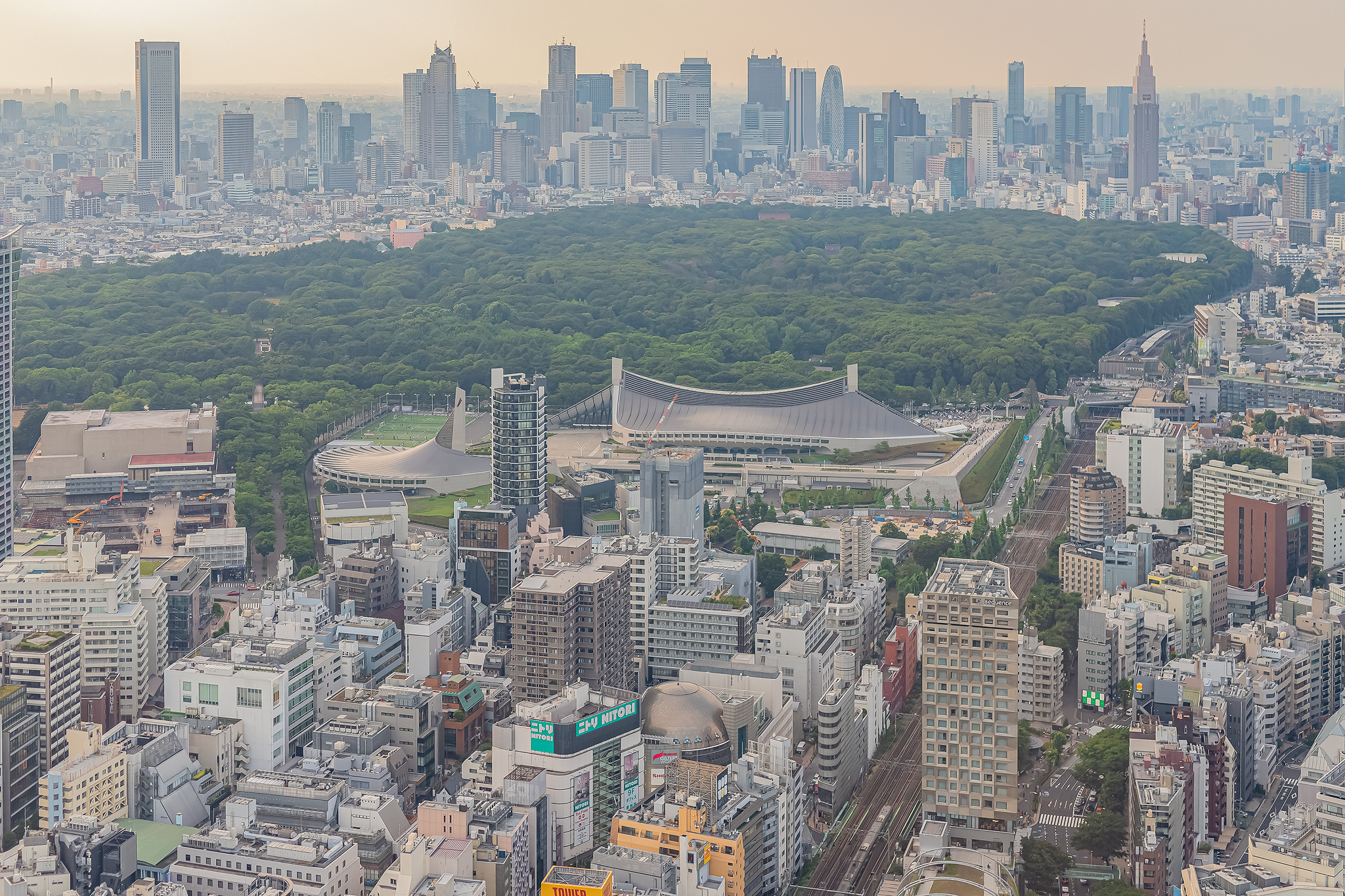 메이지진구와 신주쿠의 고층 빌딩 지역도 보입니다.