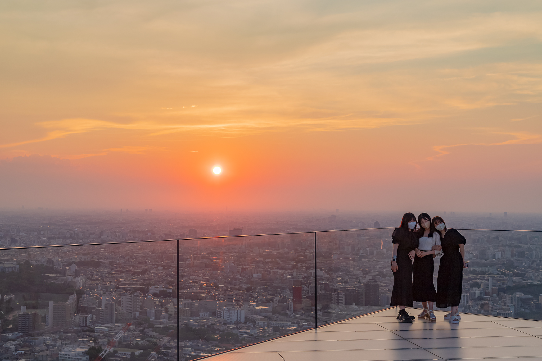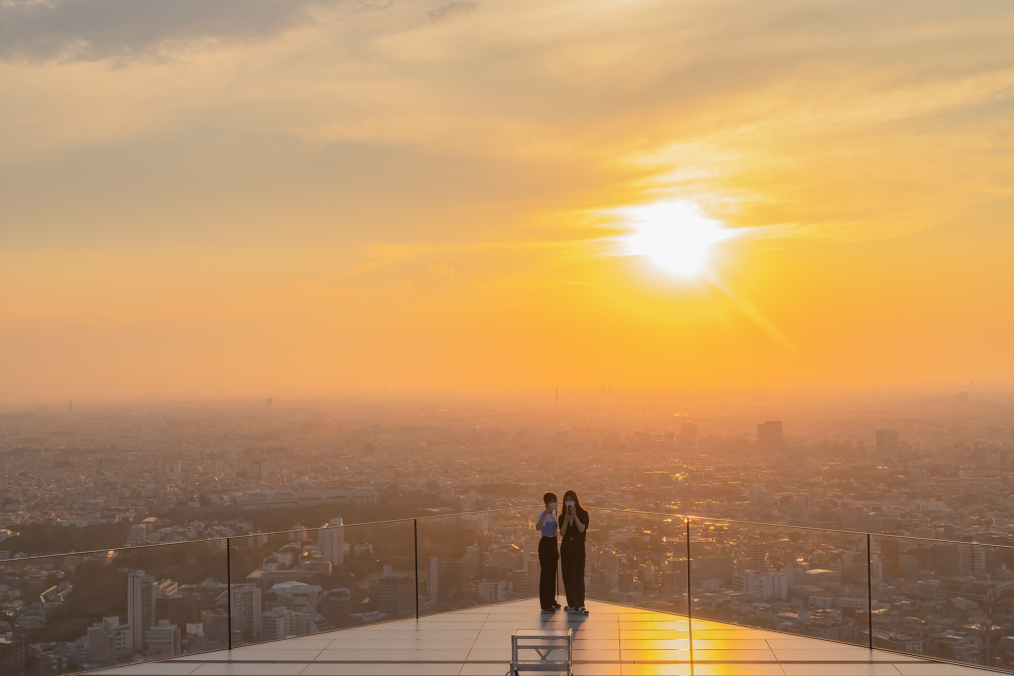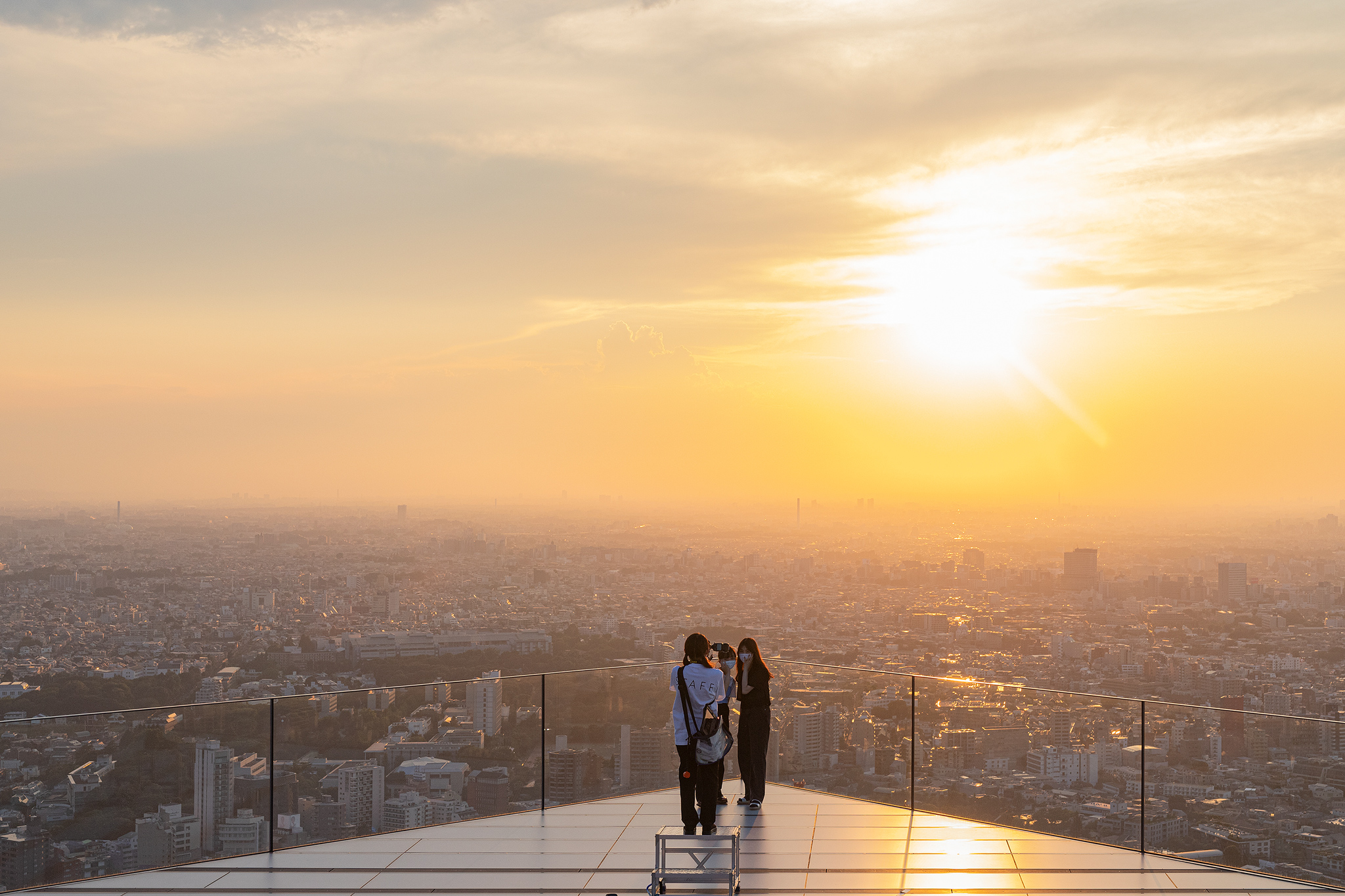 석양과 함께 멋진 풍경을 만들어내는 시부야 스카이