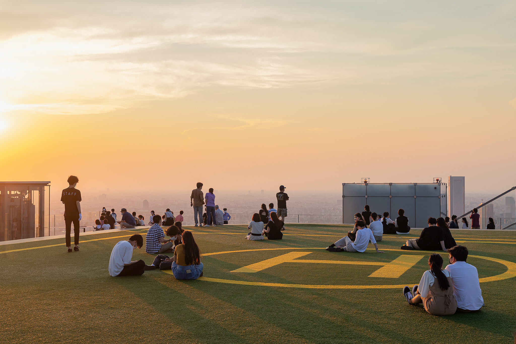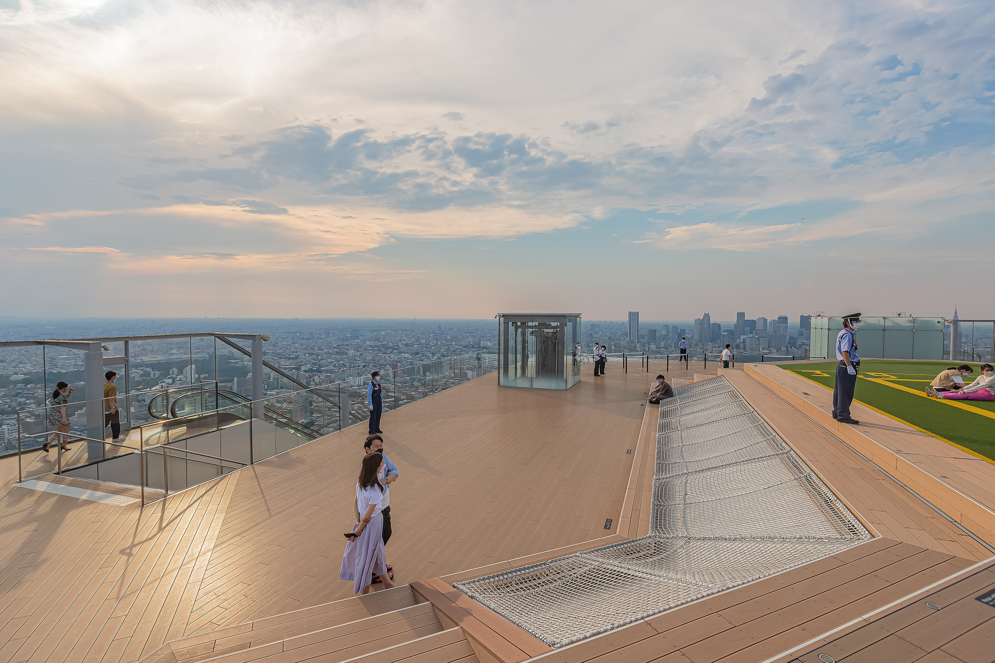 노을이 지기 시작하며 시부야 스카이에도 사람들이 늘어납니다.