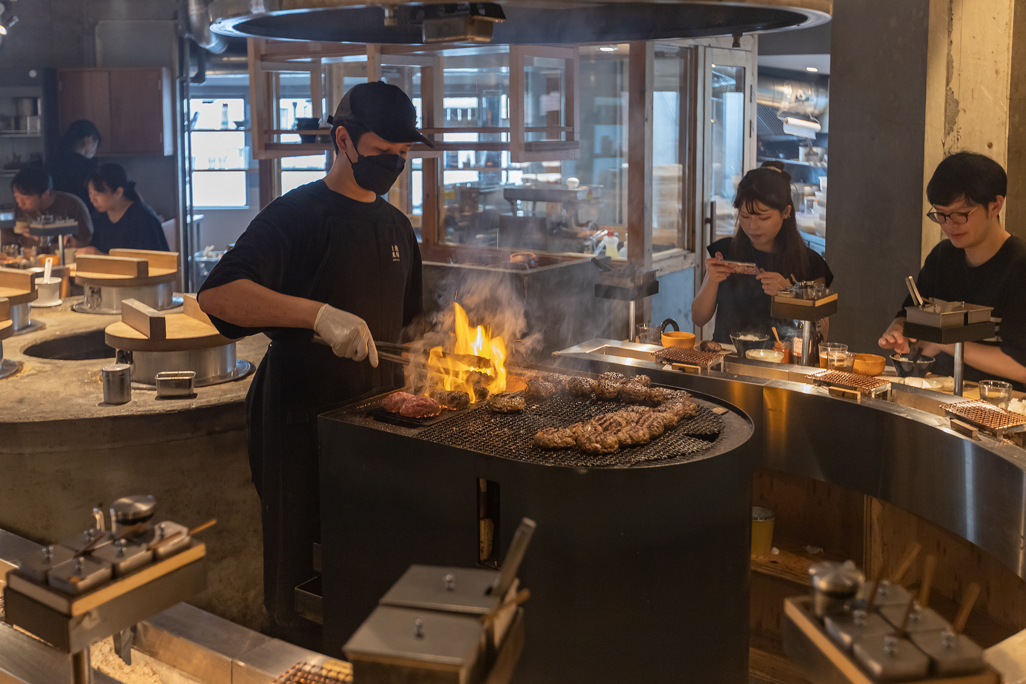 가게는 요리하는 것을 직접 보면서 맛볼 수 있는 라운드형 카운터 자리이며