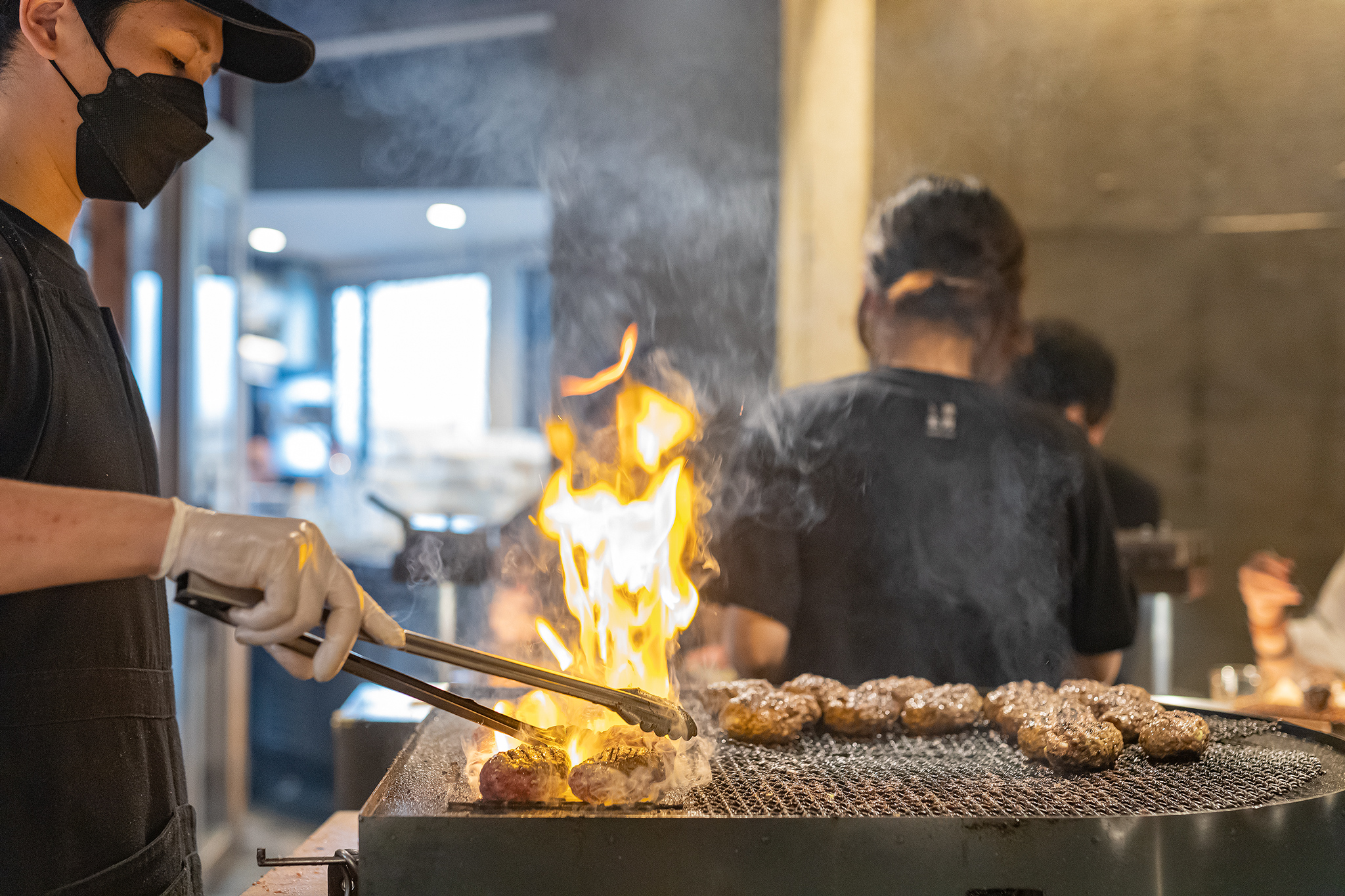 눈 앞에서 구워지는 햄버그