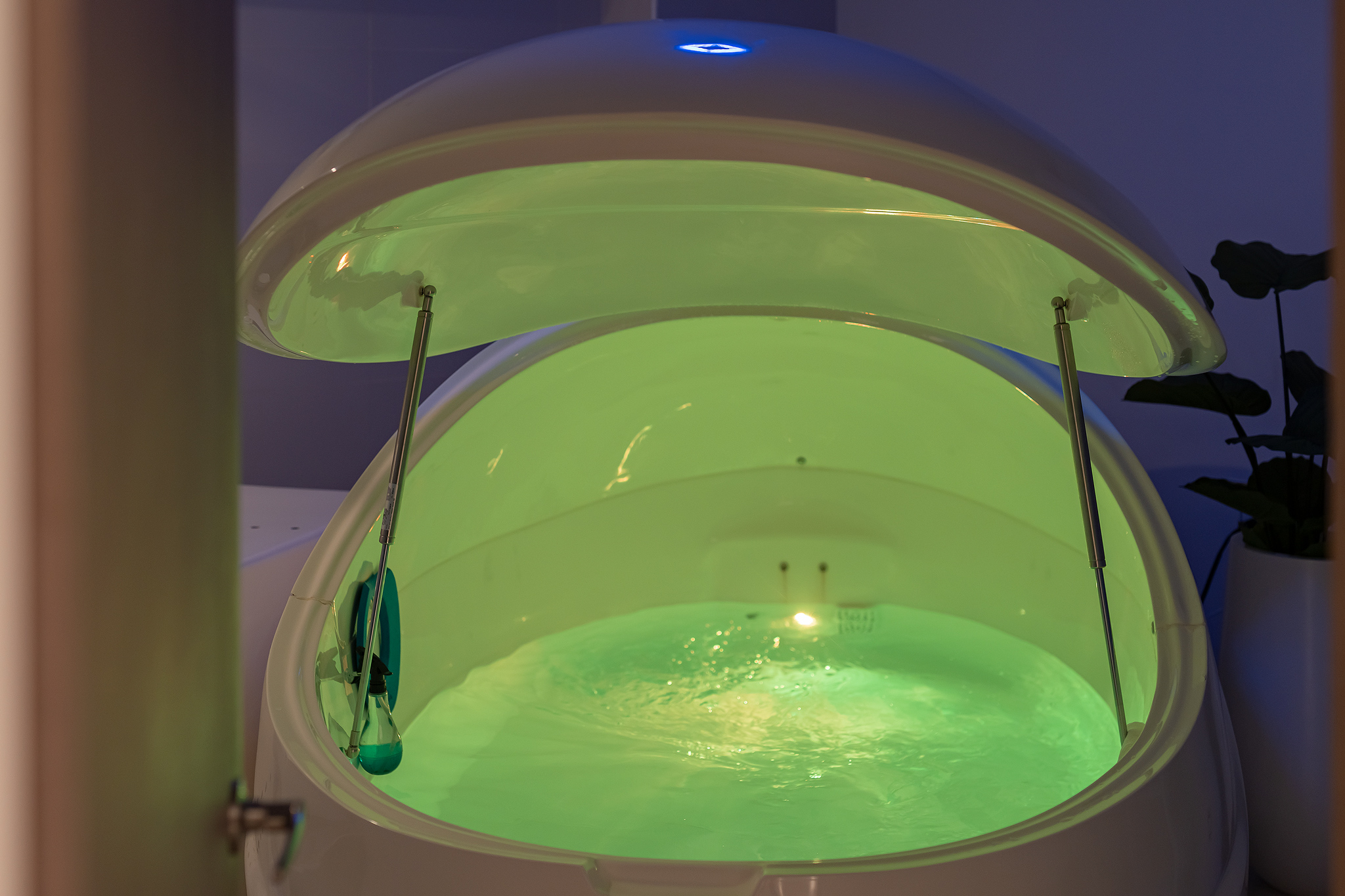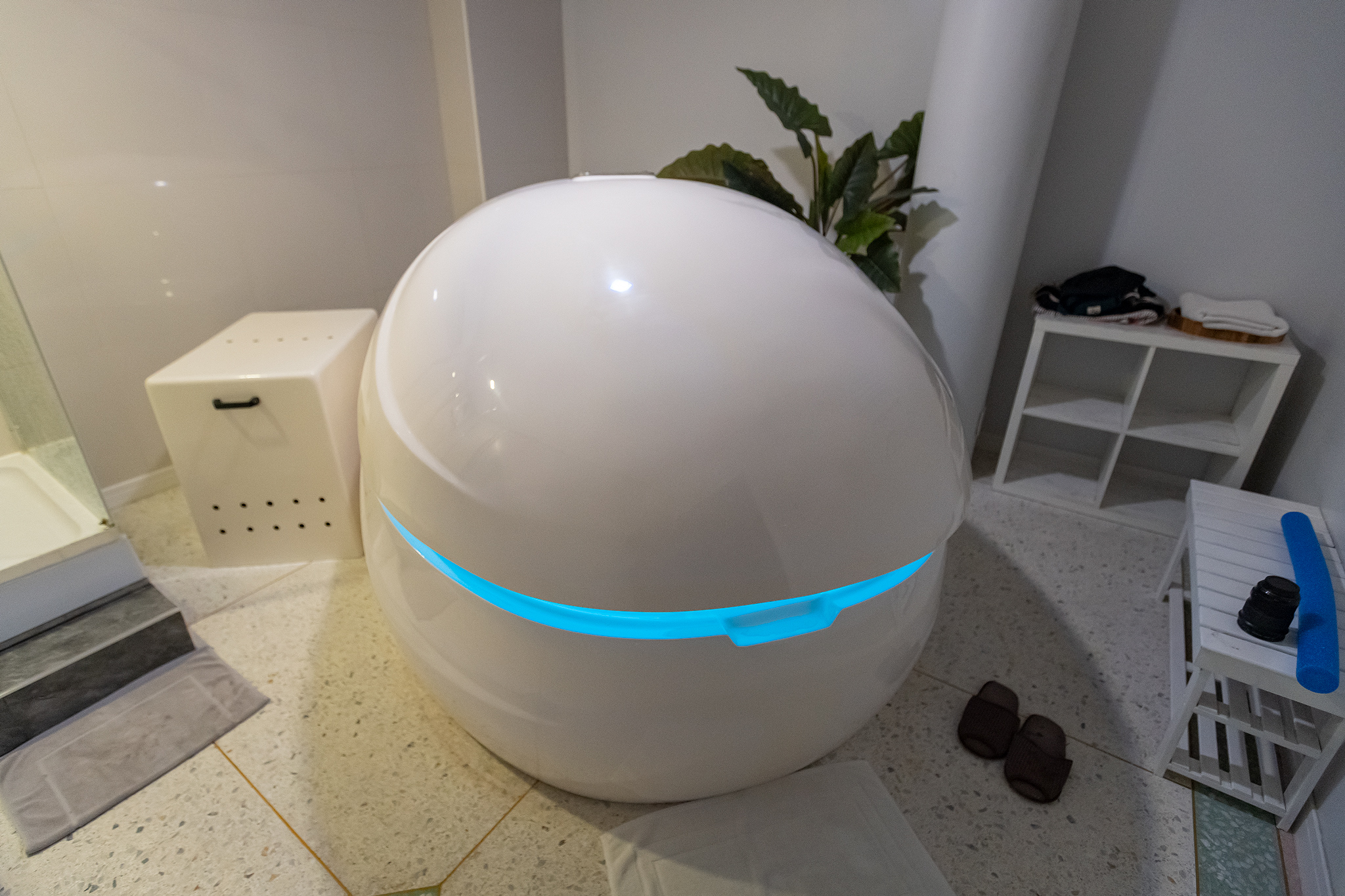 방안에는 플로트 테라피 캡슐이 설치되어 있으며